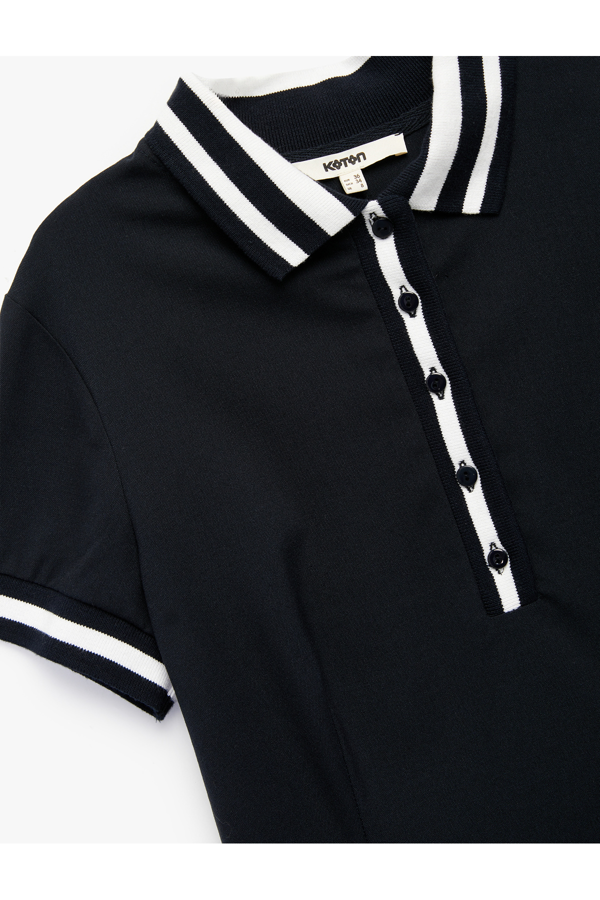 Yarım Düğmeli Pileli Kısa Kollu Mini Polo Yaka Elbise Yarım Düğmeli Pileli Kısa Kollu Mini Polo Yaka Elbise 6WAK80017PW 44
