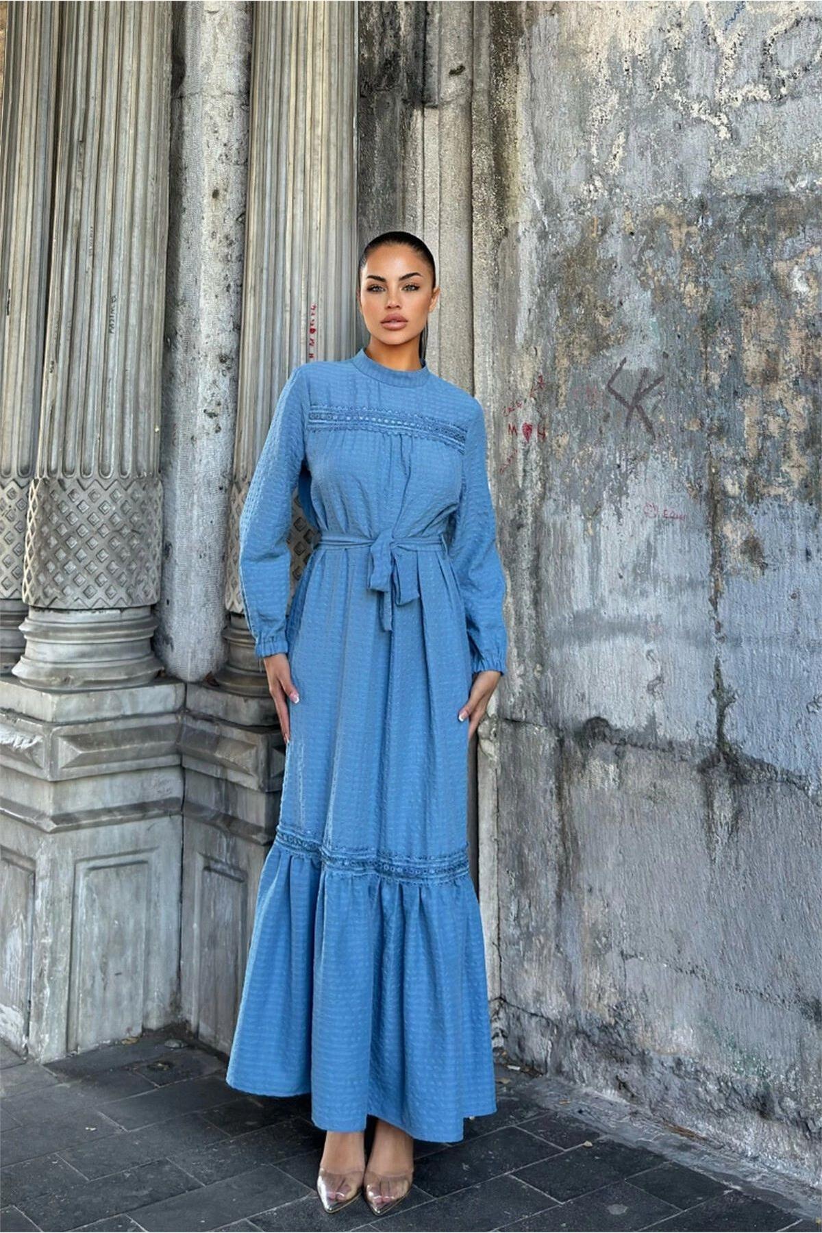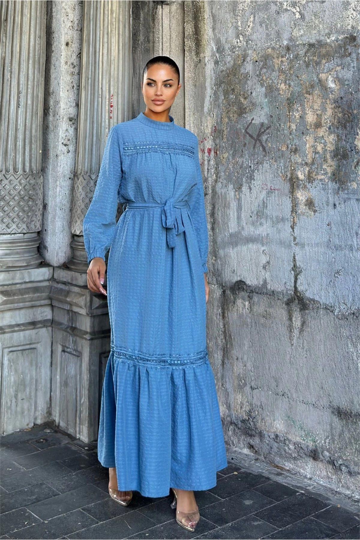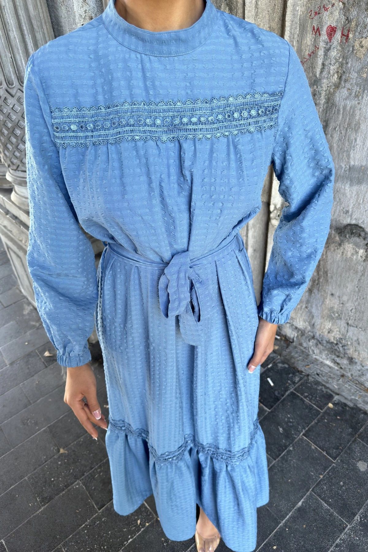 İndigo Kuşaklı, Dantel Detaylı, Maksi Lotus Elbise İndigo Kuşaklı, Dantel Detaylı, Maksi Lotus Elbise NY3617 42