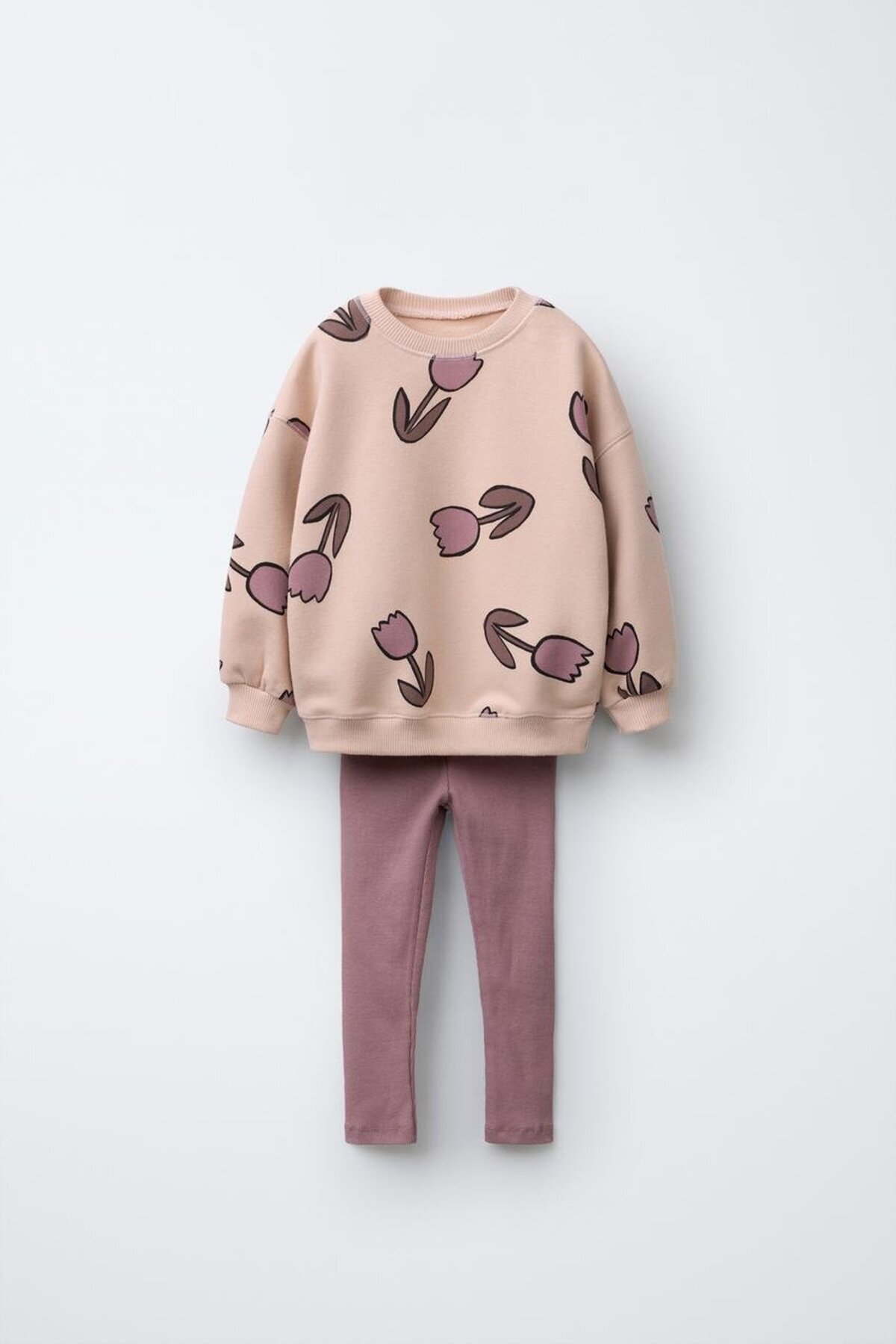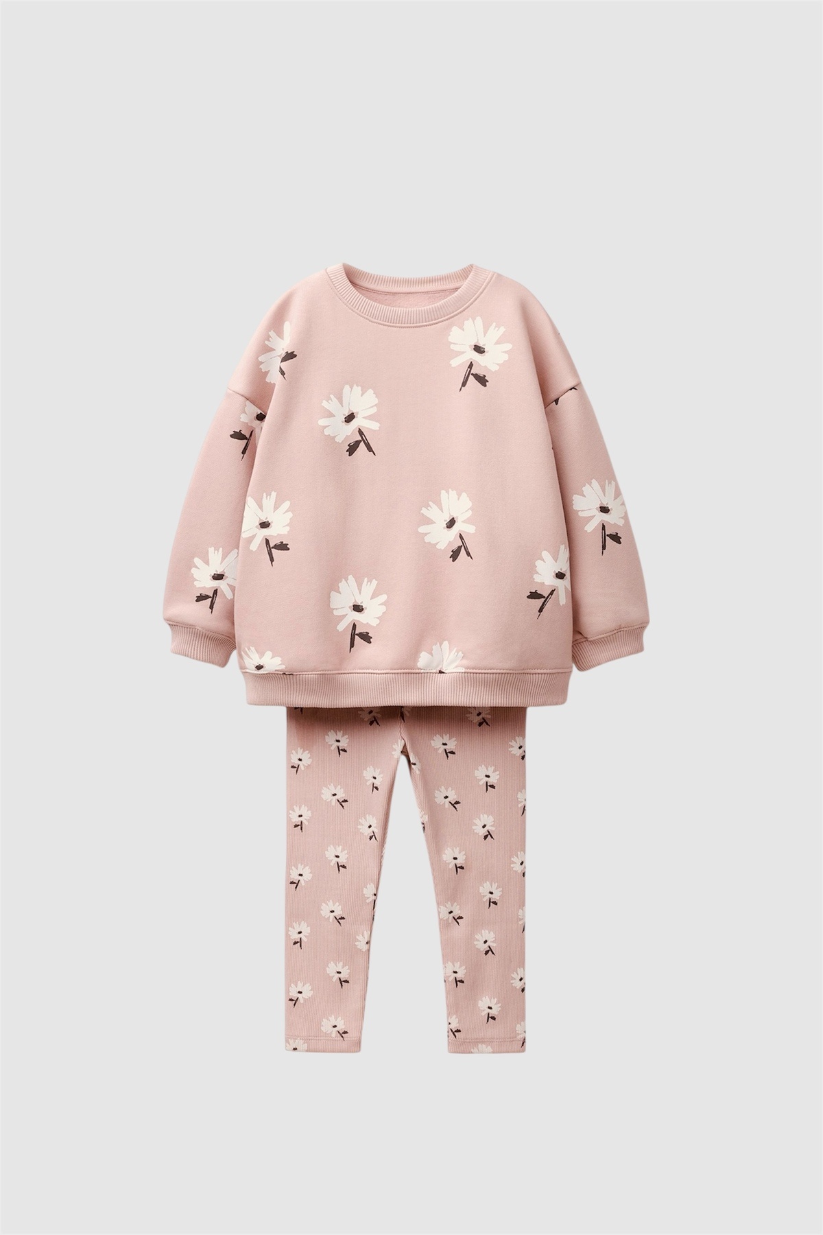 Kız Çocuk Pamuklu Krem Fiyonk Desenli Sweatshirt ve Tayt Takım Kız Çocuk Pamuklu Krem Fiyonk Desenli Sweatshirt ve Tayt Takım Mg26Winter66 7-8 Yaş