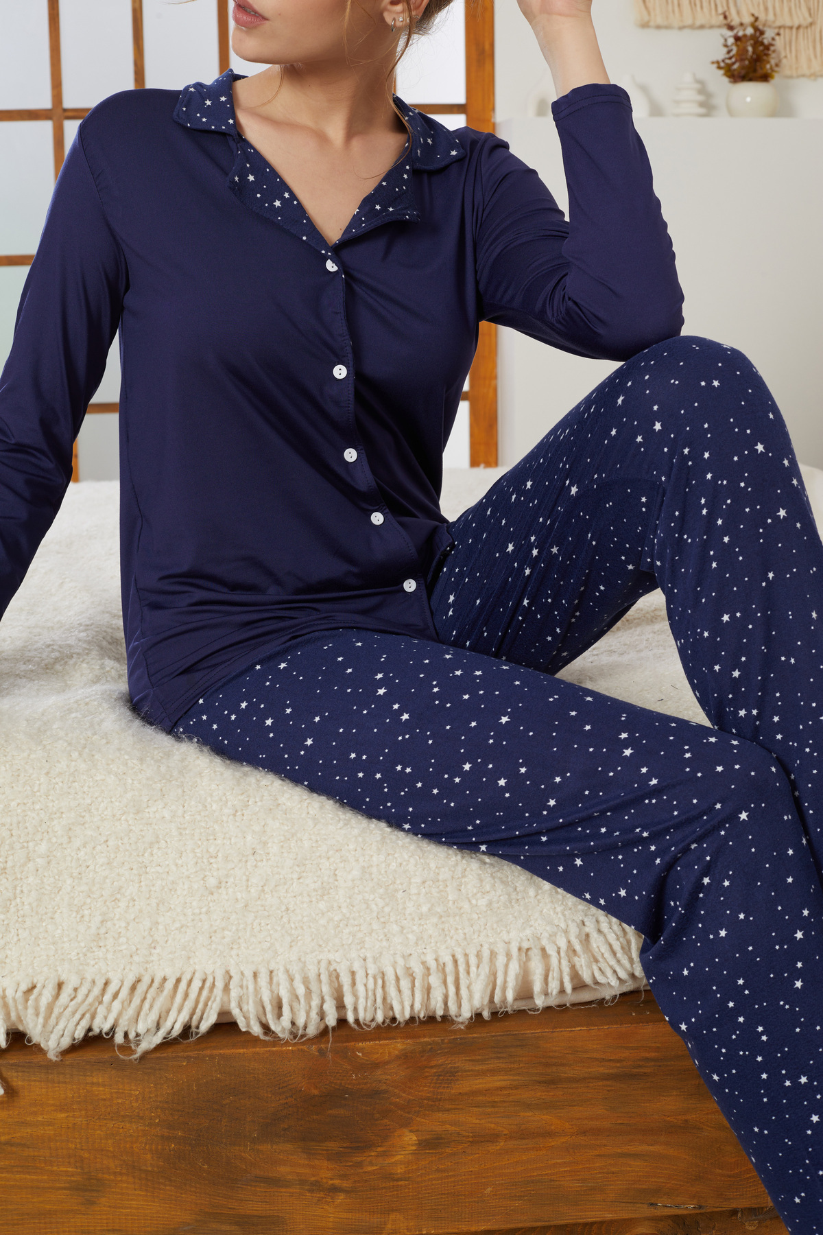 indigo puan Desenli Gömlek Yaka Düğmeli Milan Örme Pijama Takım25224010 indigo puan Desenli Gömlek Yaka Düğmeli Milan Örme Pijama Takım25224010 XL