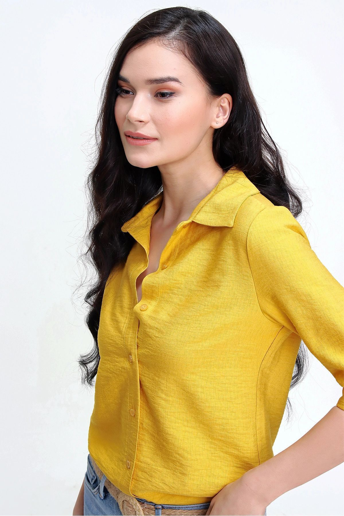 Kadın Hardal Klasik Yaka Uzun Kol Regular Kesim Standart Boy Gömlek(Özel Kumaş) Kadın Hardal Klasik Yaka Uzun Kol Regular Kesim Standart Boy Gömlek(Özel Kumaş) N3043 42