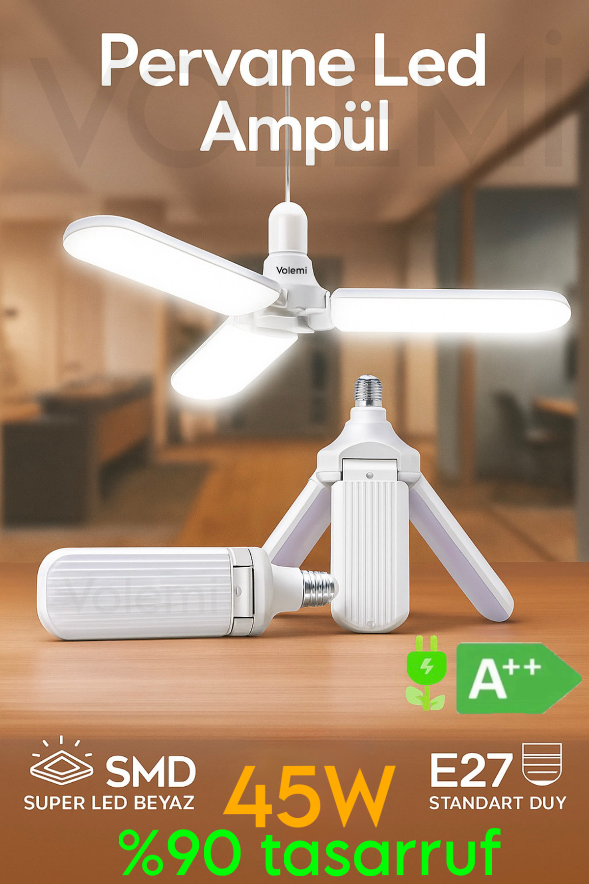 3 Kanatlı %90 tasarruflu 45w Ampul 5.000 Lümen Led Aydınlatma Beyaz Işık Led Ampul 3 Kanatlı %90 tasarruflu 45w Ampul 5.000 Lümen Led Aydınlatma Beyaz Işık Led Ampul 3Kollu تک سایز