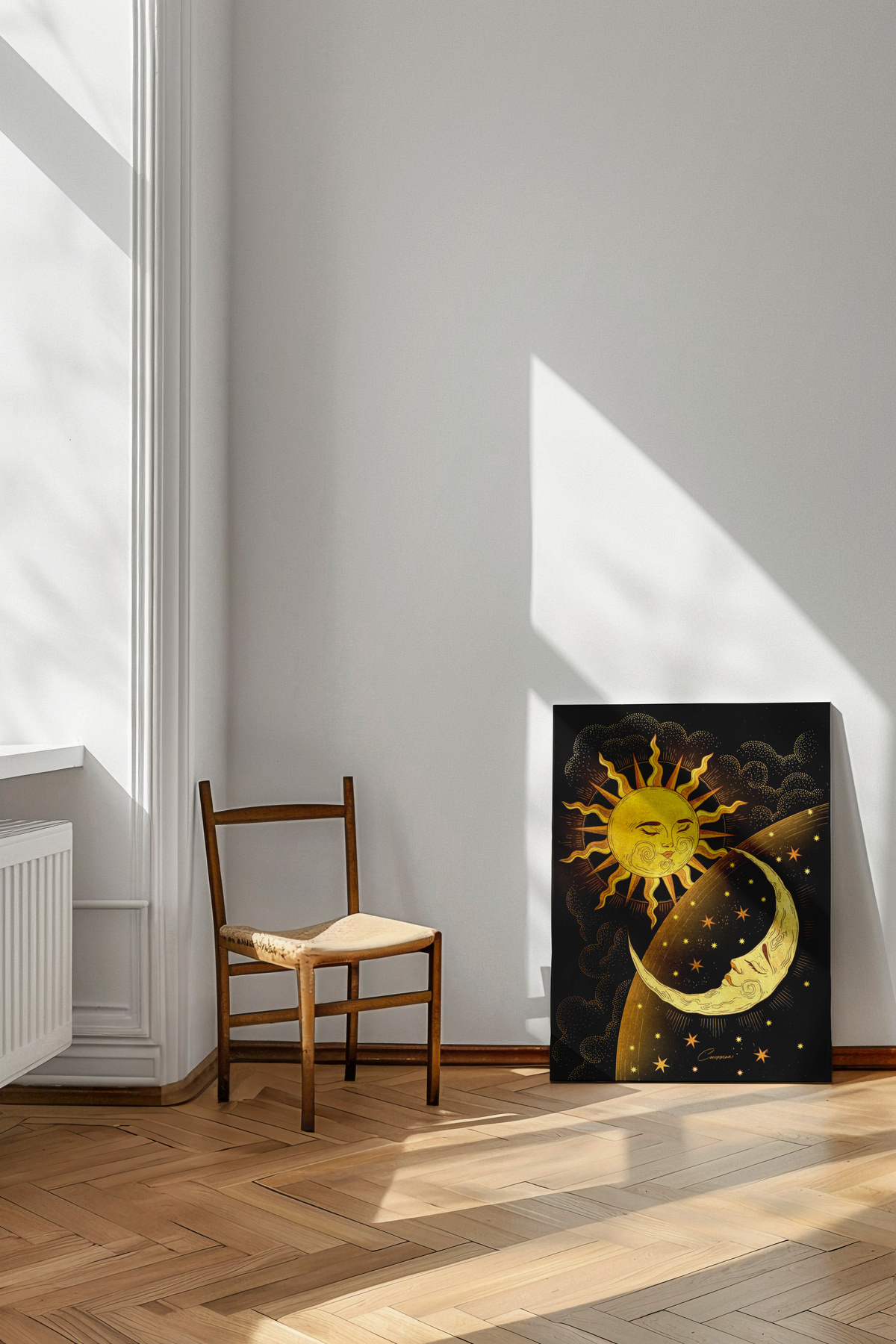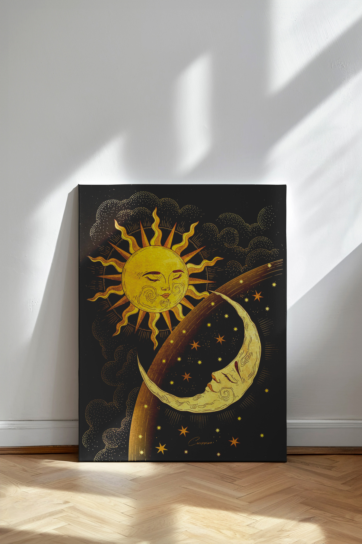 Güneş ve Ay İllüstrasyonu - Kanvas Tablo - Altın Tonlar, Astroloji ve Gökyüzü Temalı Dekor Güneş ve Ay İllüstrasyonu - Kanvas Tablo - Altın Tonlar, Astroloji ve Gökyüzü Temalı Dekor taltnguneşay1 120 x 160