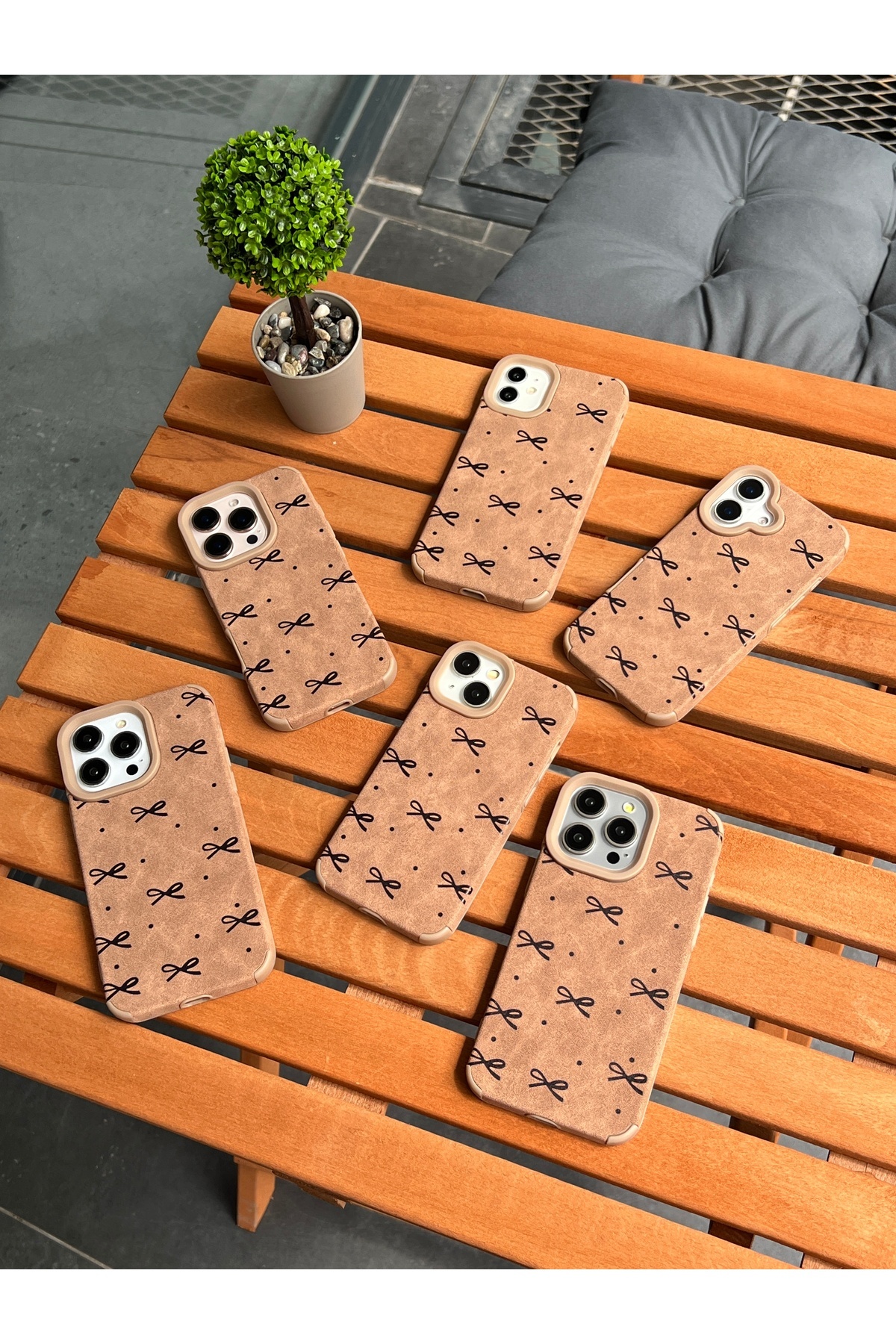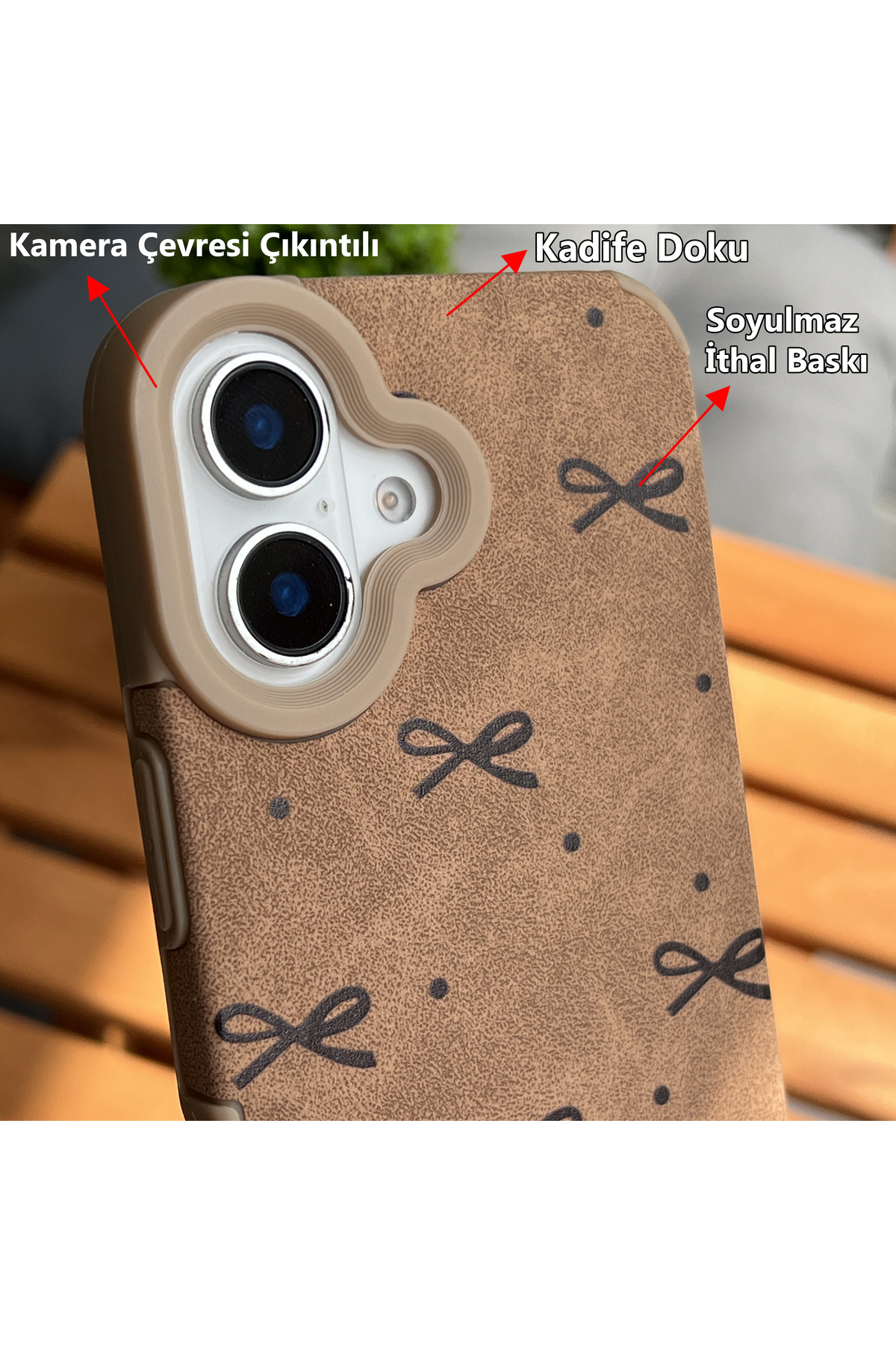 iPhone 14 Pro Max için Fiyonk Desenli Kahverengi Kılıf - Yumuşak Silikon, Kadife Dokulu Kapak iPhone 14 Pro Max için Fiyonk Desenli Kahverengi Kılıf - Yumuşak Silikon, Kadife Dokulu Kapak 14PmGuccase تک سایز
