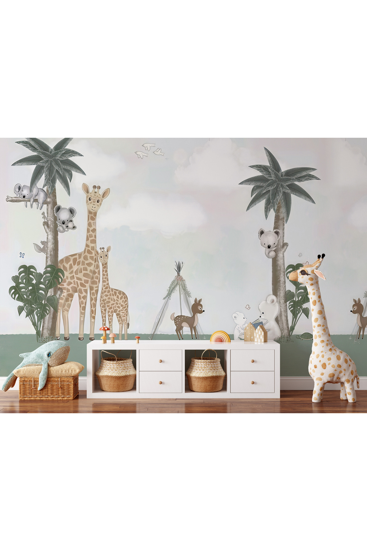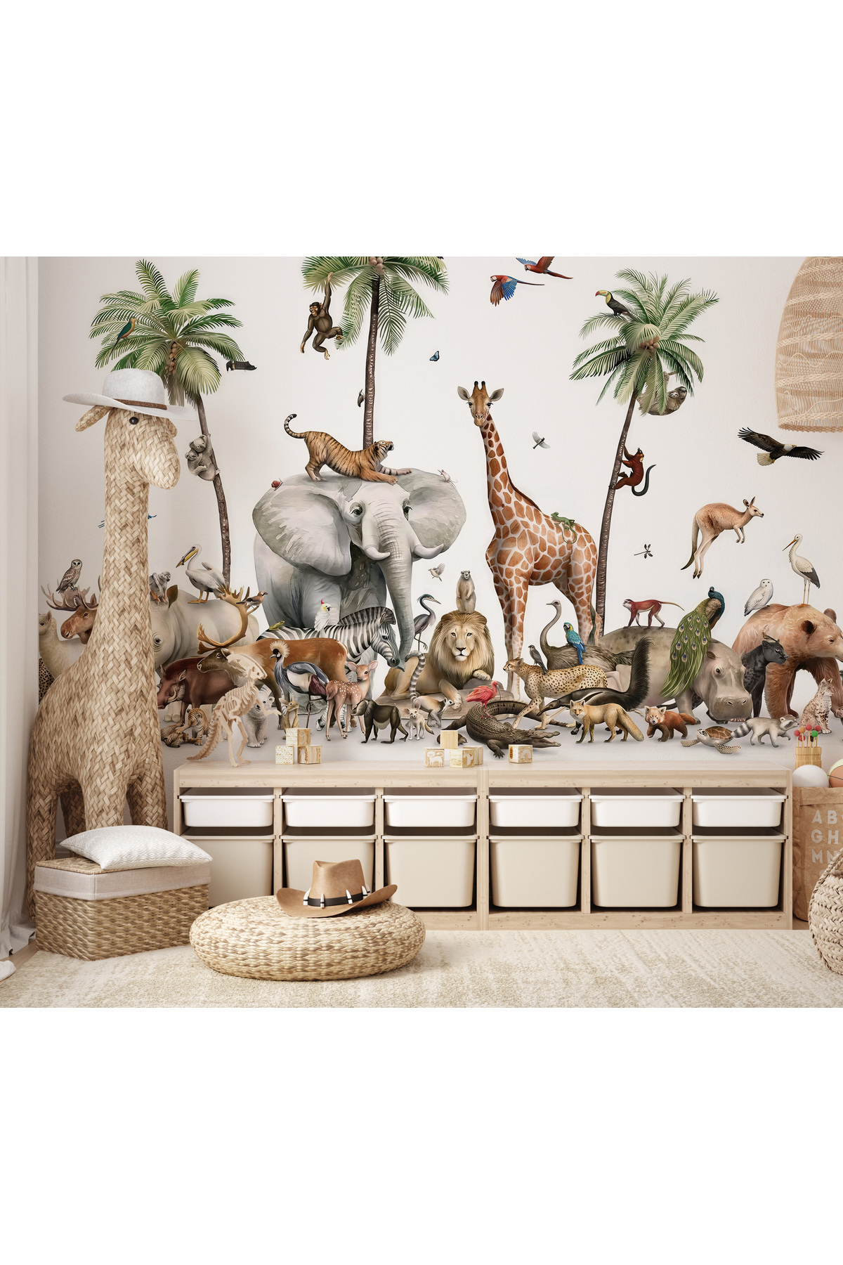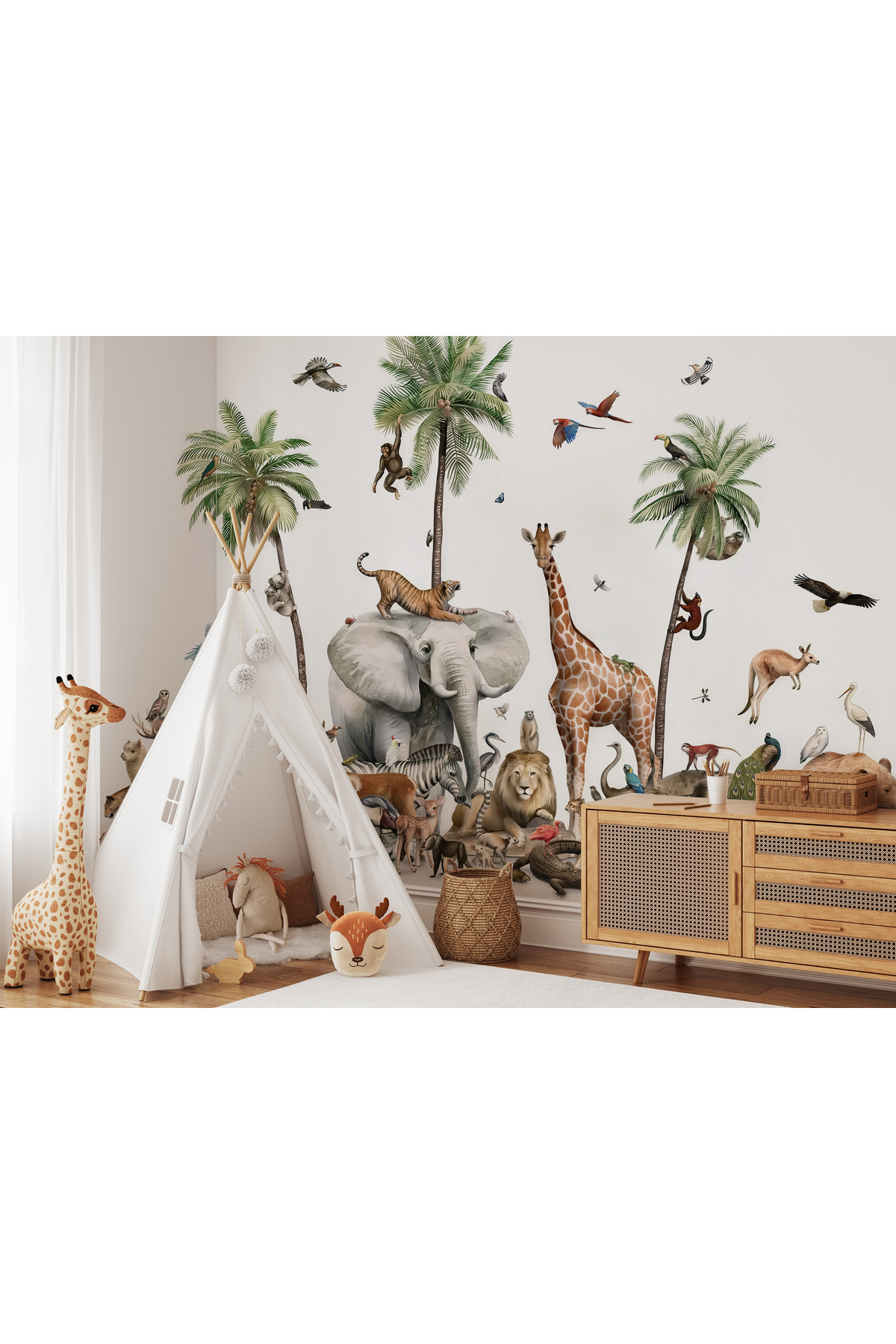 Tropikal Hayvanlar Kolaj Çalışma Özel Palmiye Ağaçları Tropikal Duvar Kağıdı Tropikal Hayvanlar Kolaj Çalışma Özel Palmiye Ağaçları Tropikal Duvar Kağıdı TR-199 250 x 170