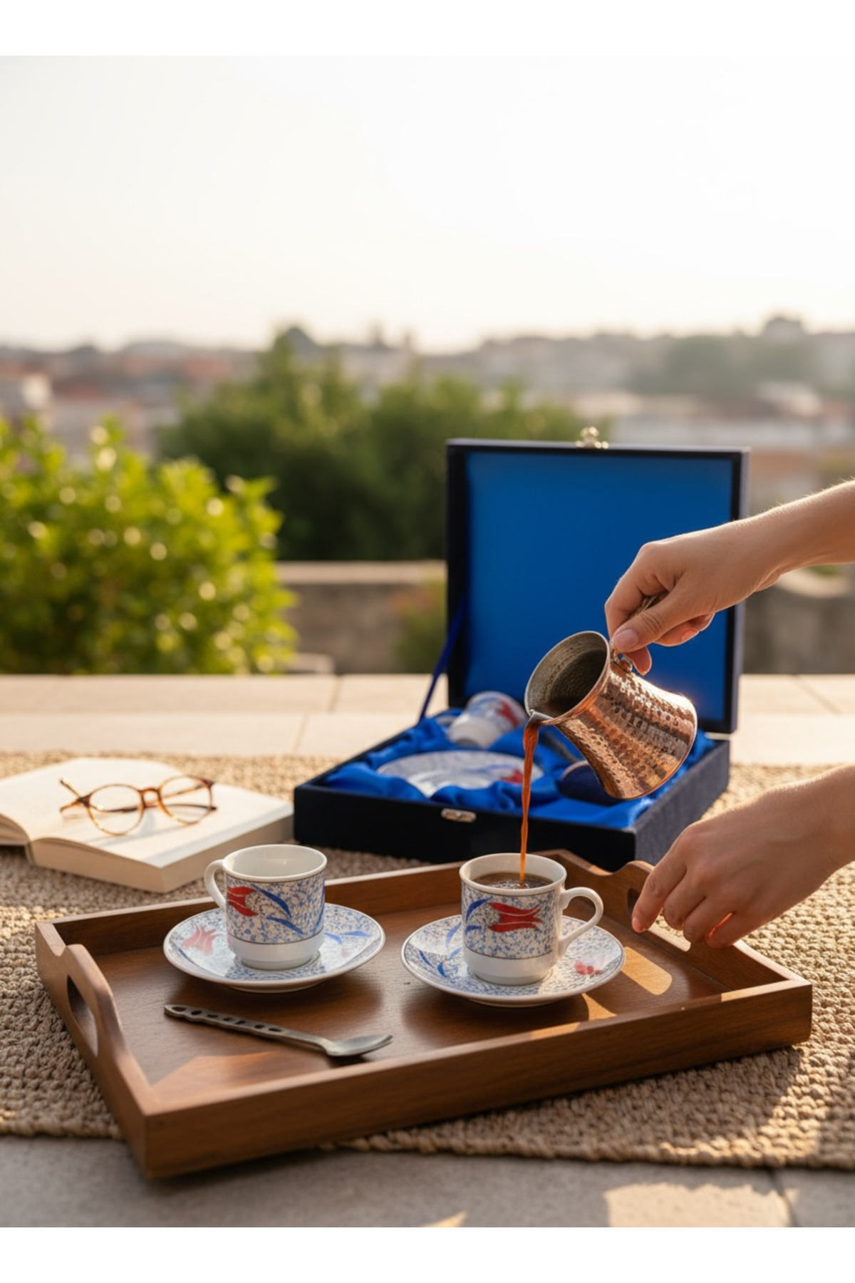 İkili Cezveli Kahve Fincanı Seti Kadife Kutulu İkili Cezveli Kahve Fincanı Seti Kadife Kutulu ALA-İCKFSKK-03 تک سایز