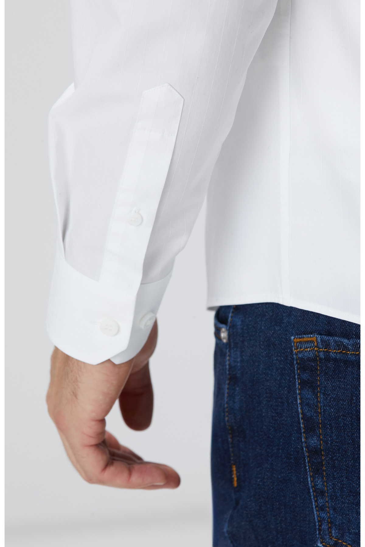 Beyaz Çizgi Desenli Non-Iron Gömlek Beyaz Çizgi Desenli Non-Iron Gömlek 1095708 46