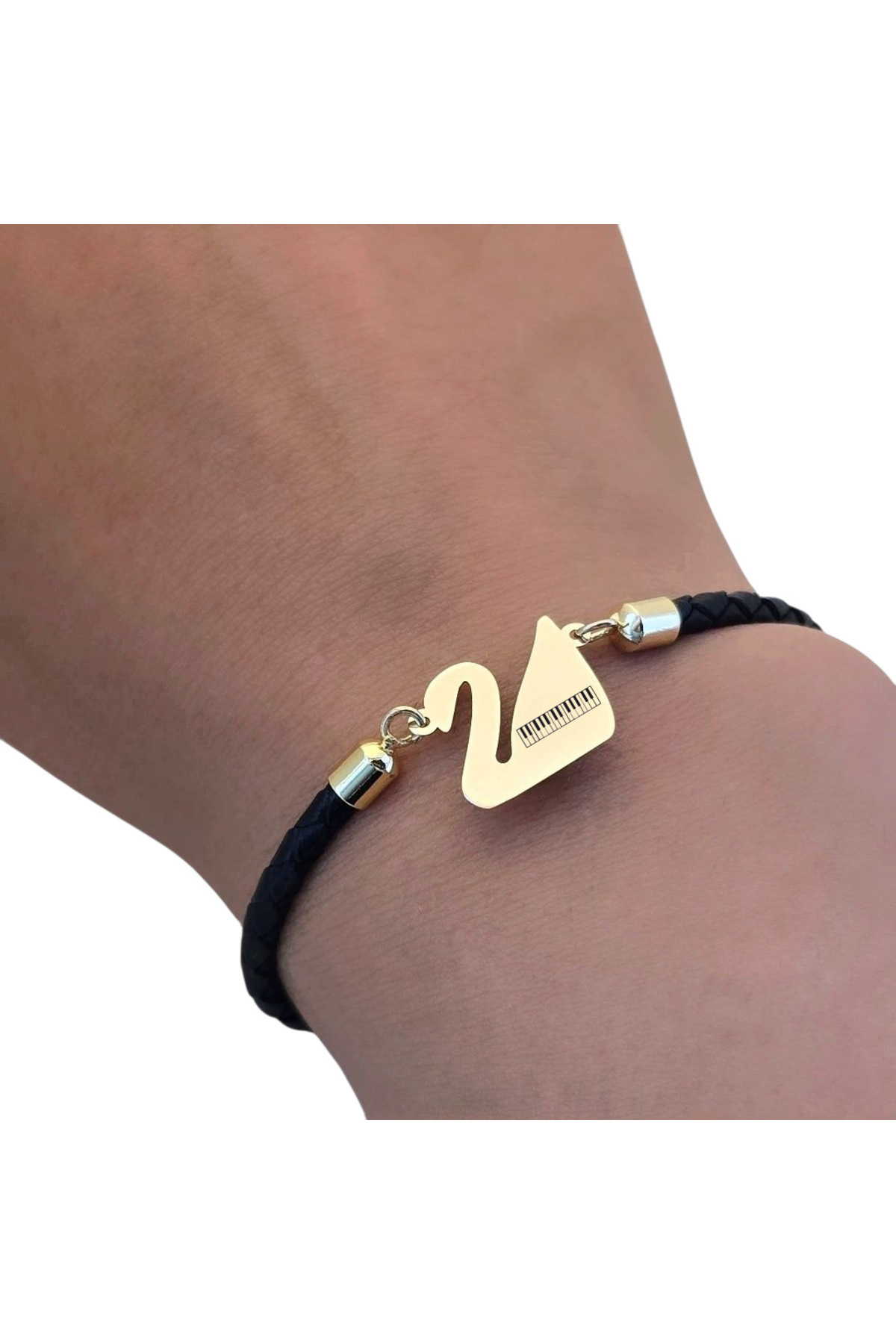 14 Ayar Plakalı Altın Piyano Temalı Kuğu Kuşu Motifli Siyah Derili Hediye Bileklik-606sembol 14 Ayar Plakalı Altın Piyano Temalı Kuğu Kuşu Motifli Siyah Derili Hediye Bileklik-606sembol 606-sdpq-ffxfg-MO3 22 cm