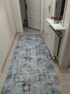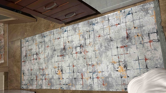 Modern Desenli Yıkanabilir Kaymaz Taban Şönil Gri Turuncu Mavi Mutfak Halısı 8393 Modern Desenli Yıkanabilir Kaymaz Taban Şönil Gri Turuncu Mavi Mutfak Halısı 8393 160 x 230