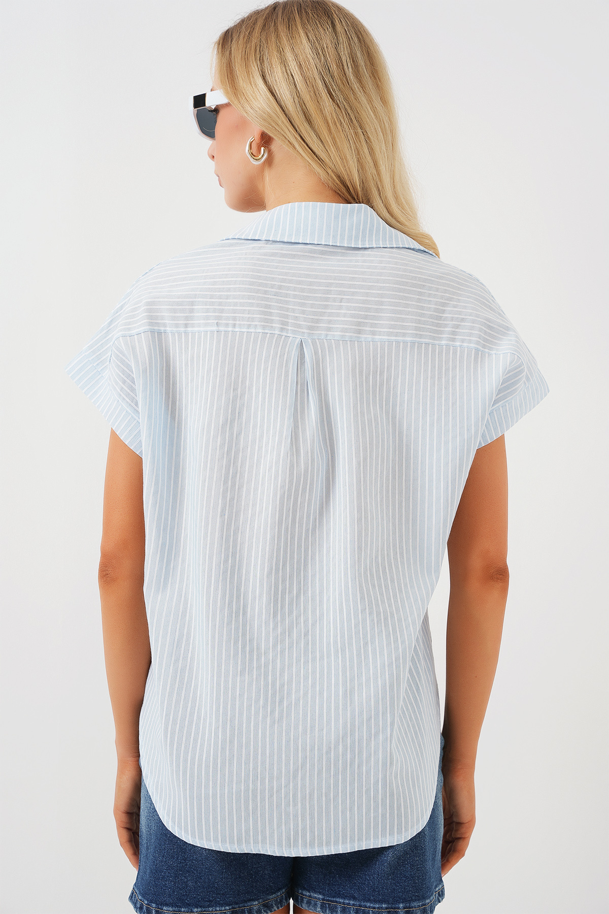 Kadın Çizgili Kısa Kol Gömlek 20354 - Açık Mavi Kadın Çizgili Kısa Kol Gömlek 20354 - Açık Mavi 20354BGD19 42