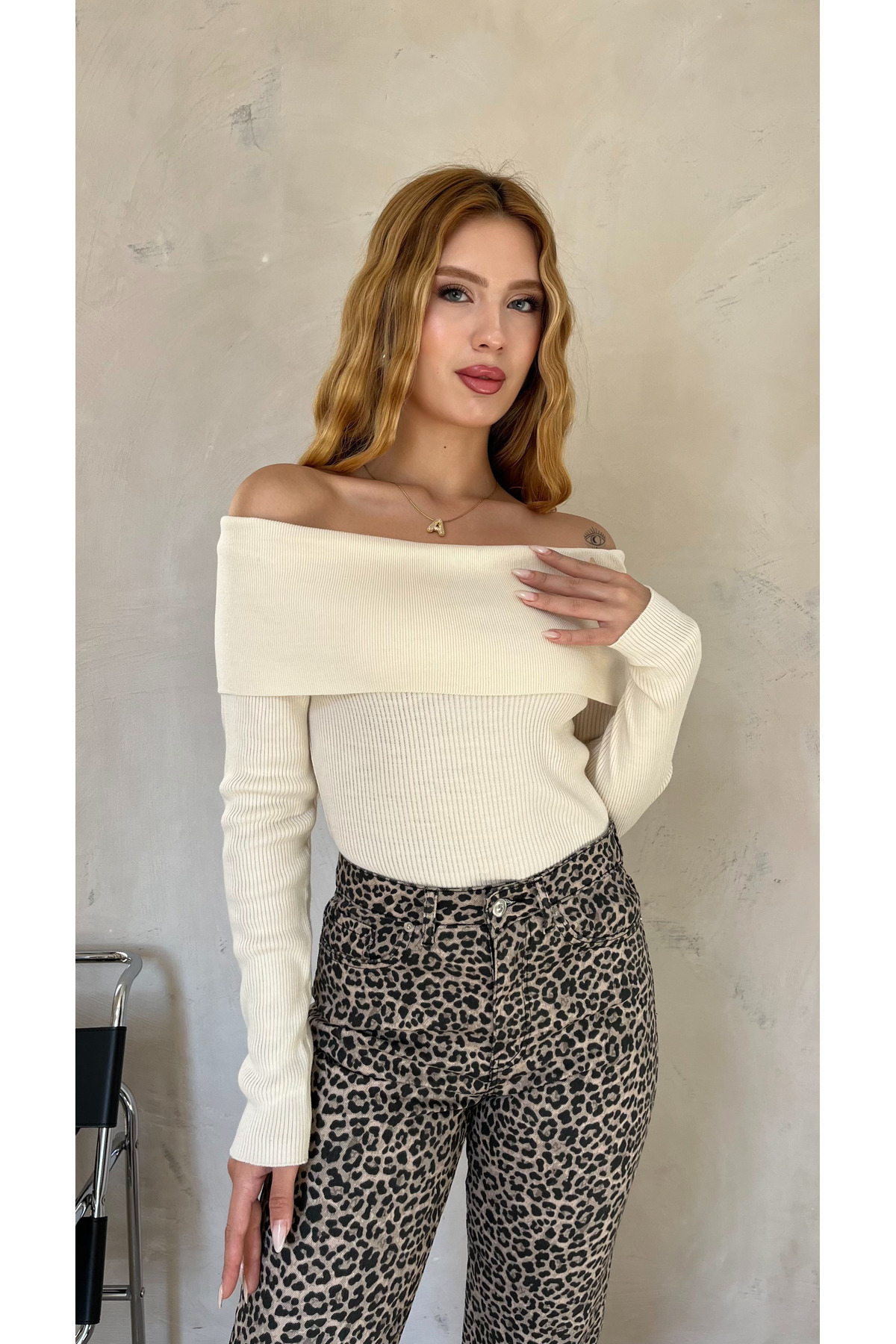 Ekru Madonna Yaka Basic Kadın Kazak SH265 Ekru Madonna Yaka Basic Kadın Kazak SH265 XL