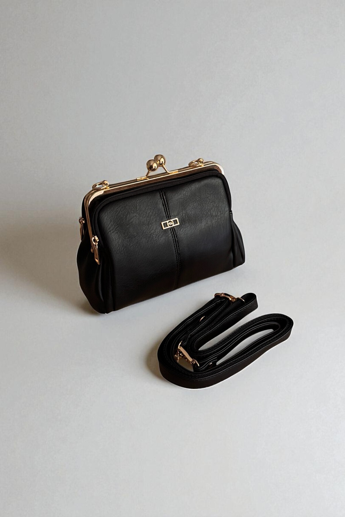 Kadın Siyah Kisslock Tokalı-İki Askılı Çok Bölmeli Omuz Çantası Orta boy Kadın Siyah Kisslock Tokalı-İki Askılı Çok Bölmeli Omuz Çantası Orta boy BVL01 Standart