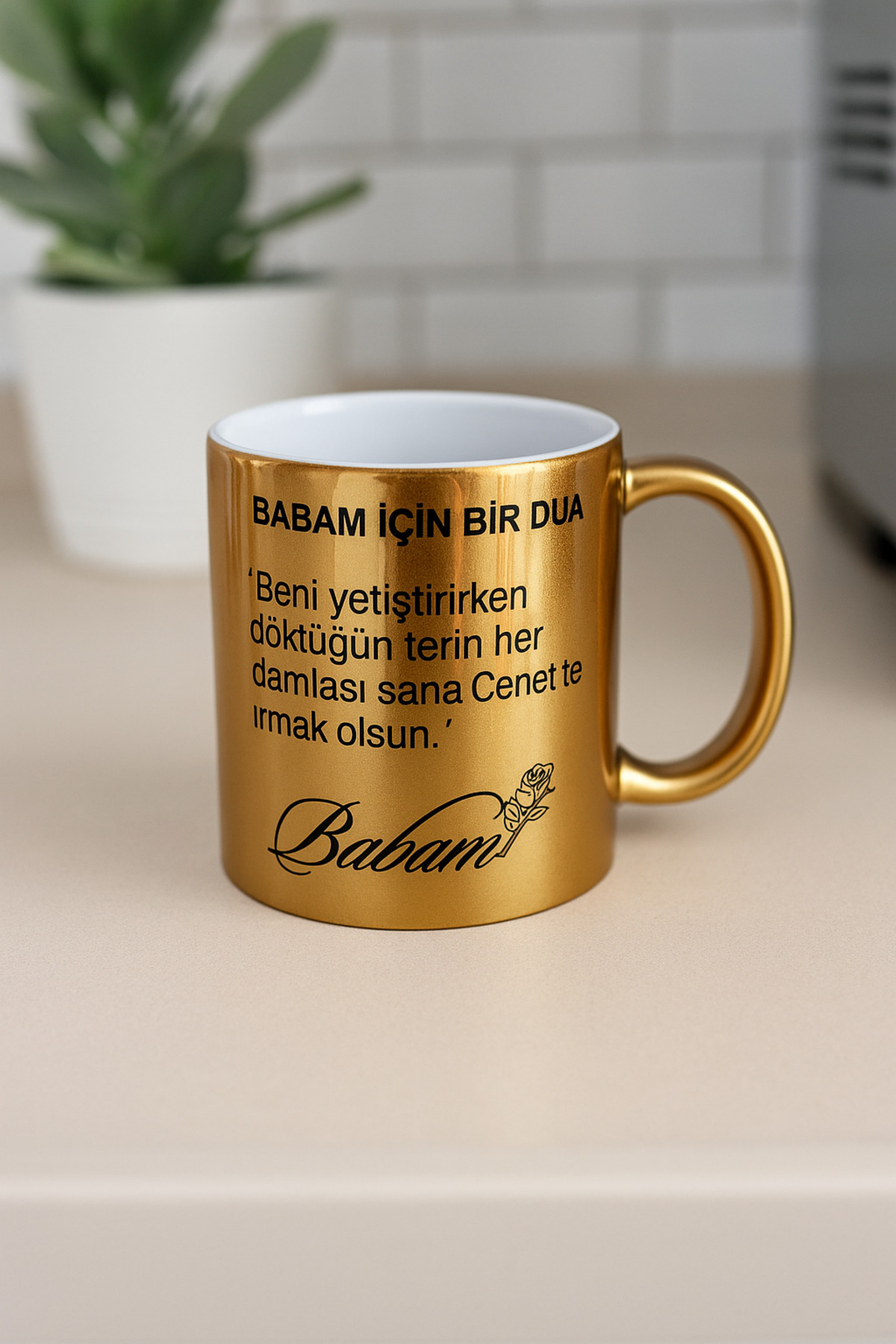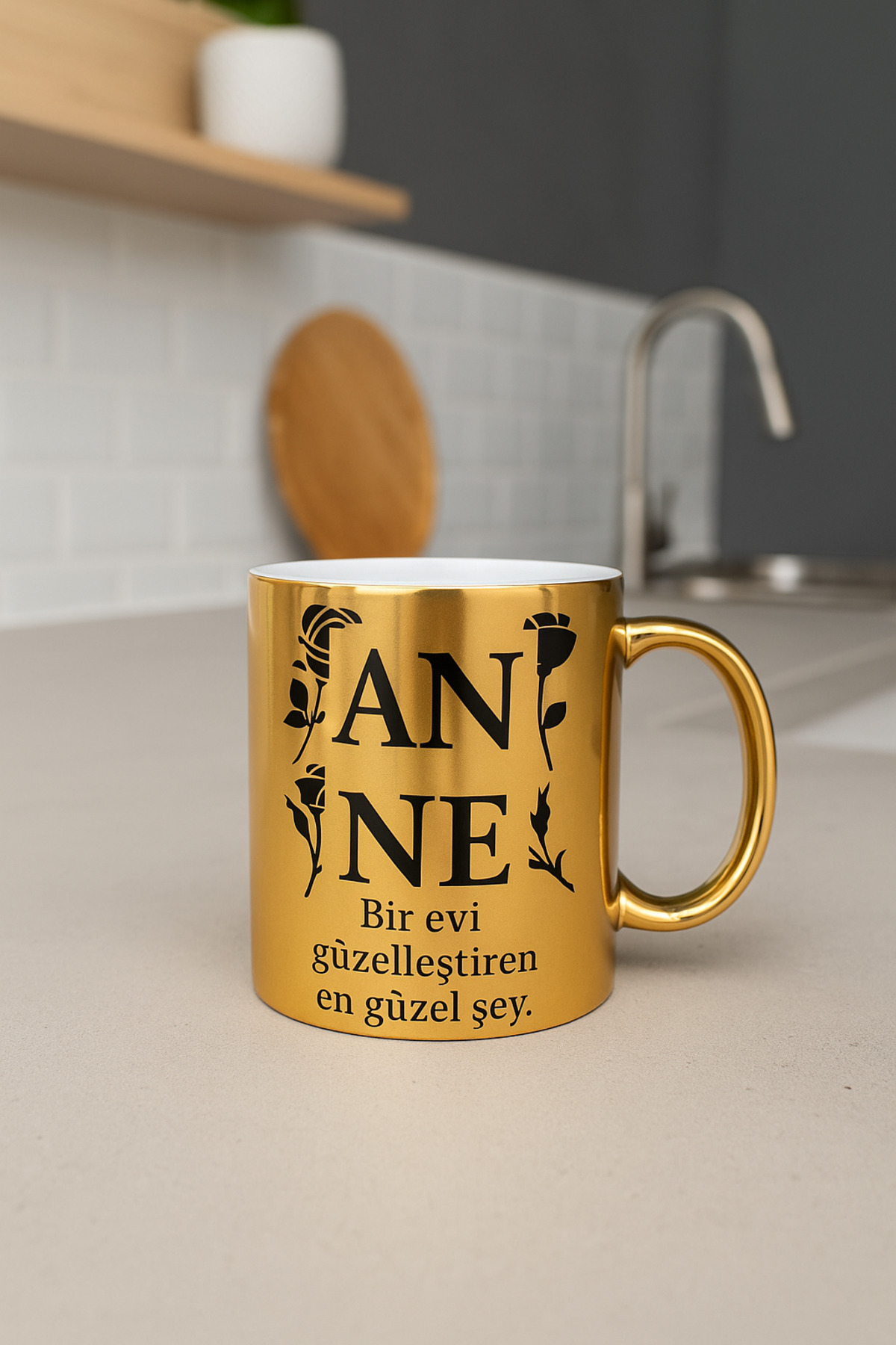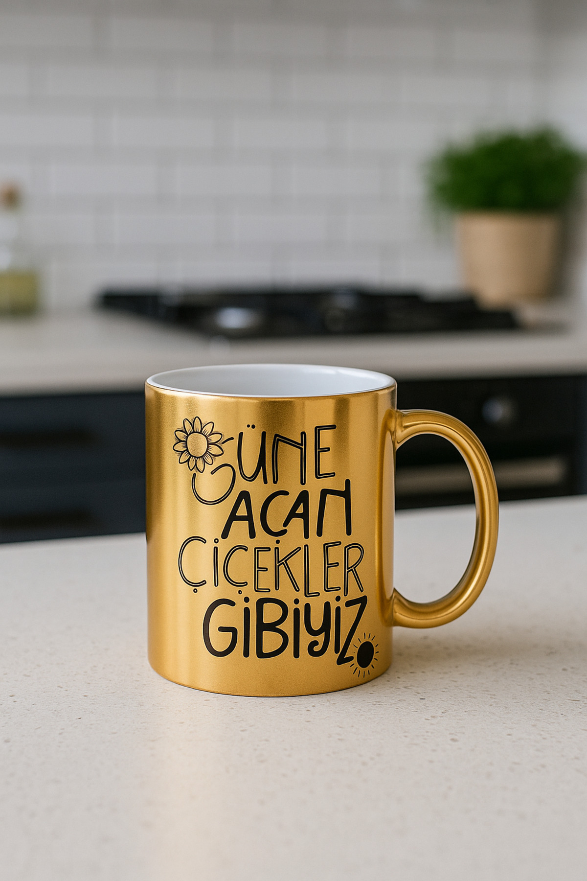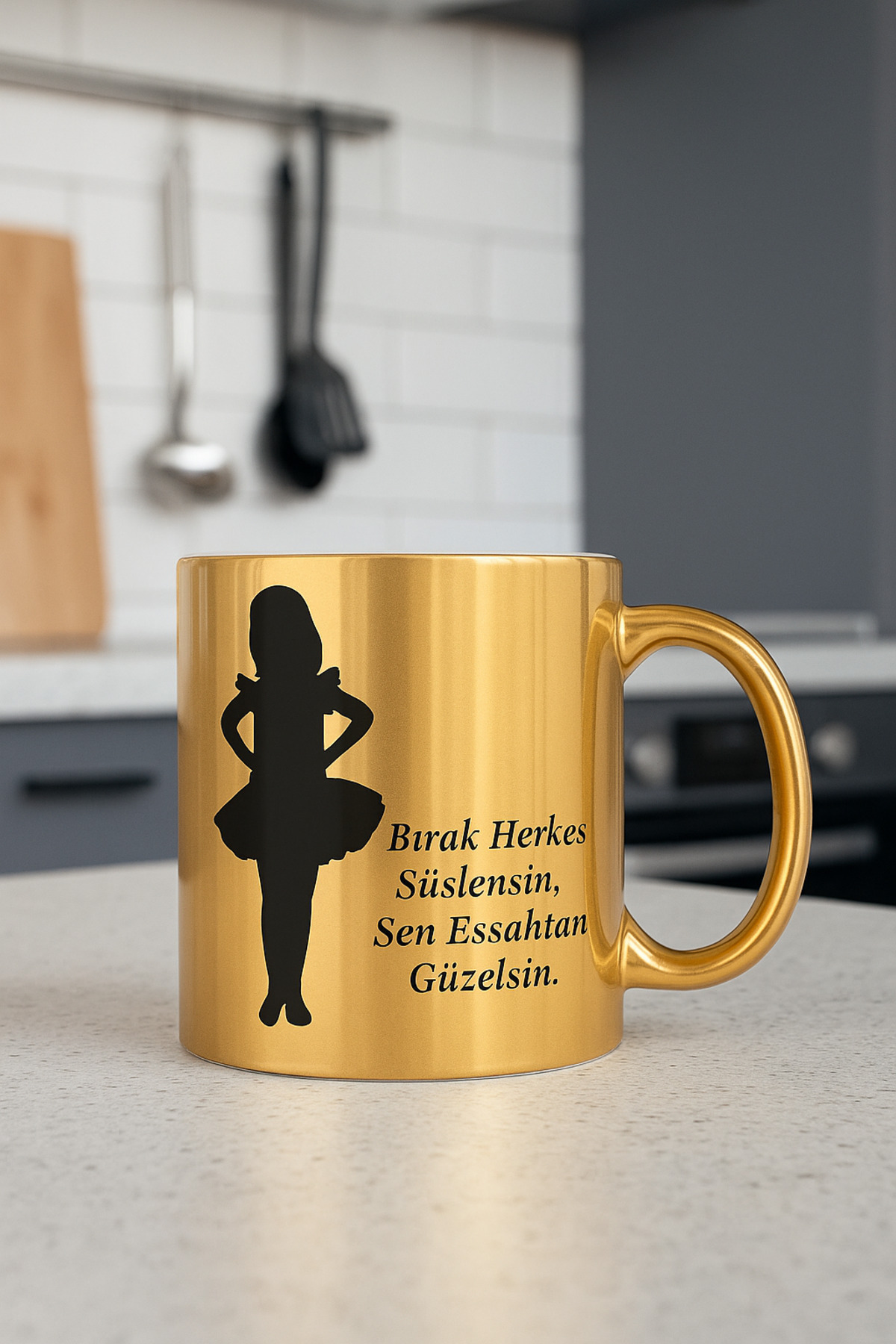 Yazı Baskılı Büyük Boy Altın Rengi Kahve Kupa Bardak Yazı Baskılı Büyük Boy Altın Rengi Kahve Kupa Bardak 86475COKA تک سایز