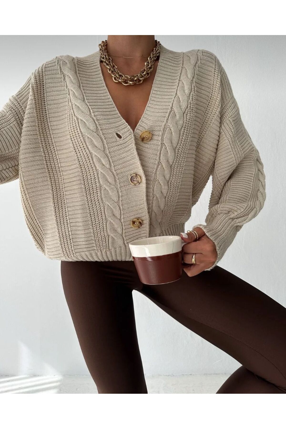 Kadın Saç Örgü Desenli Triko Hırka 4 Düğmeli Triko Hırka Kadın Saç Örgü Desenli Triko Hırka 4 Düğmeli Triko Hırka trkhrk2 Standart