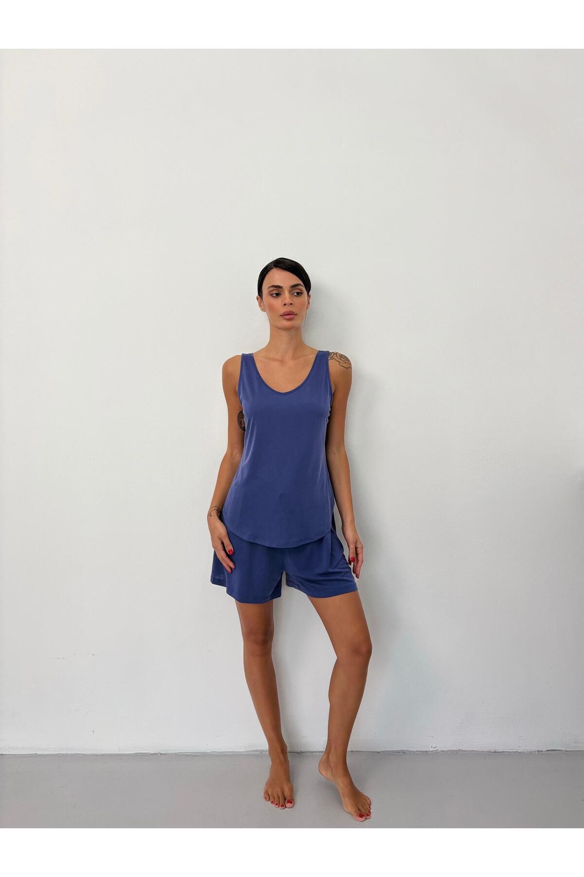 Bel Lastikli Dökümlü İndigo Modal Şort Bel Lastikli Dökümlü İndigo Modal Şort PJS-0004-ING L