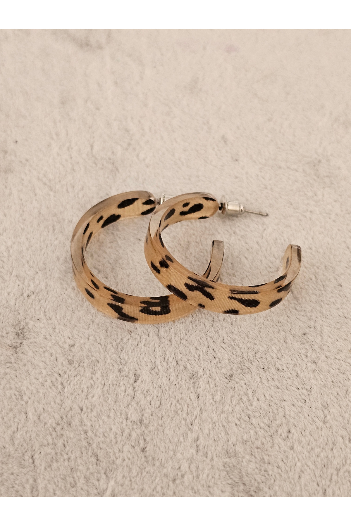 Leopar Desenli Akrilik Burgu Halka Küpe Leopar Desenli Akrilik Burgu Halka Küpe KP080-1 تک سایز