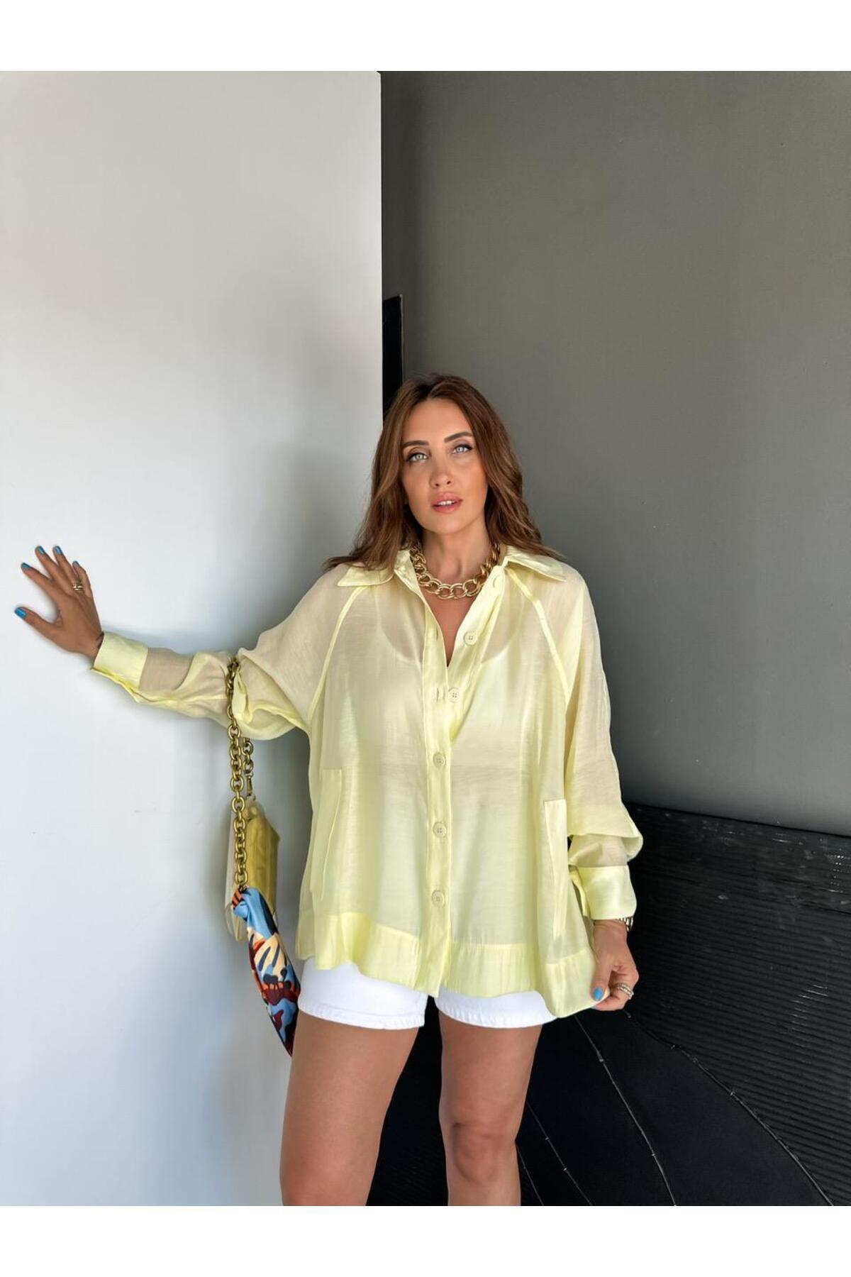 Mavi Düğmeli Transparan Gömlek Mavi Düğmeli Transparan Gömlek 2585 42