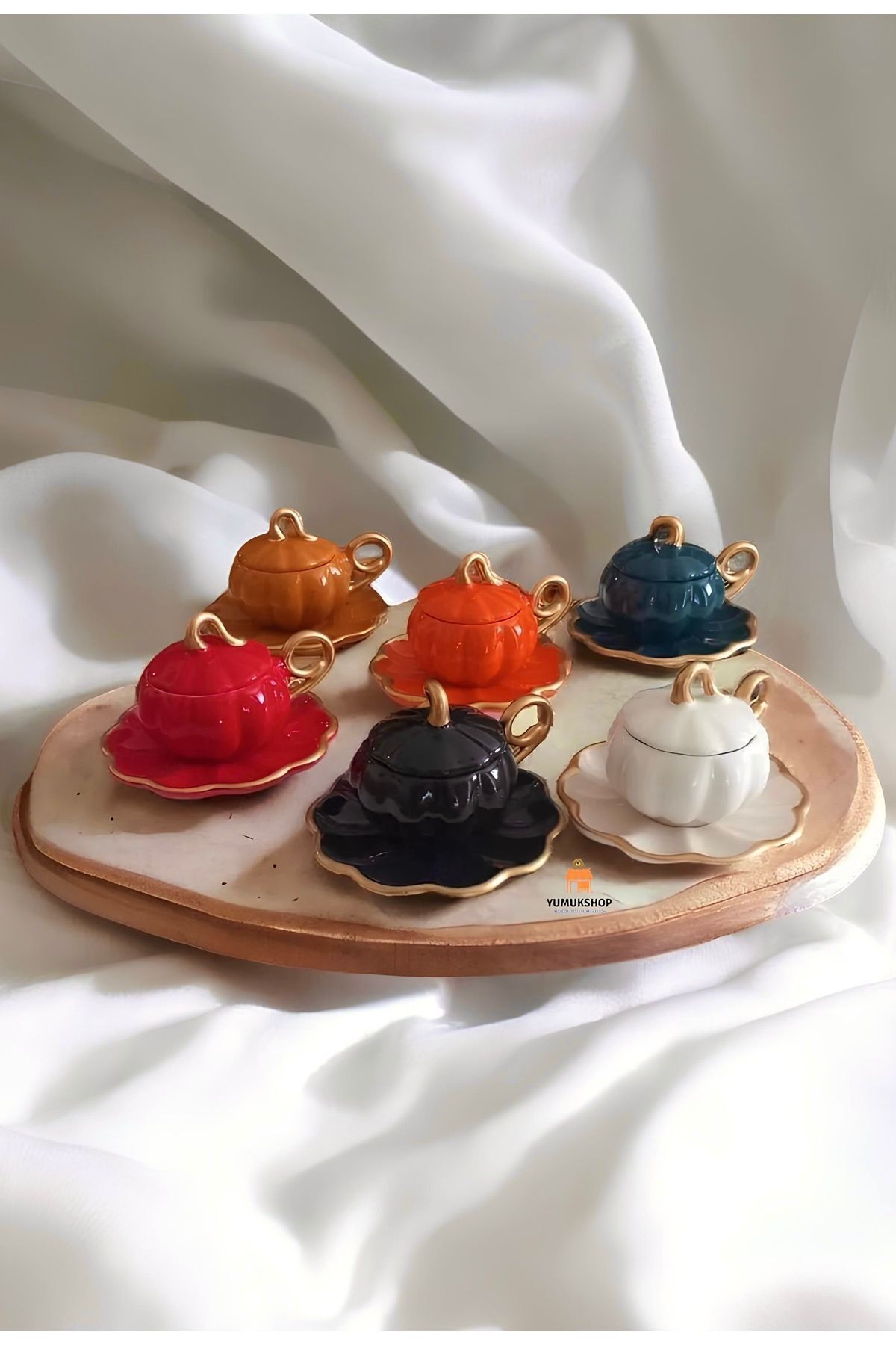 6'lı Renkli Balkabağı Kahve Fincan Takımı Kapaklı 18 Parça 6'lı Renkli Balkabağı Kahve Fincan Takımı Kapaklı 18 Parça kahvefincanı تک سایز