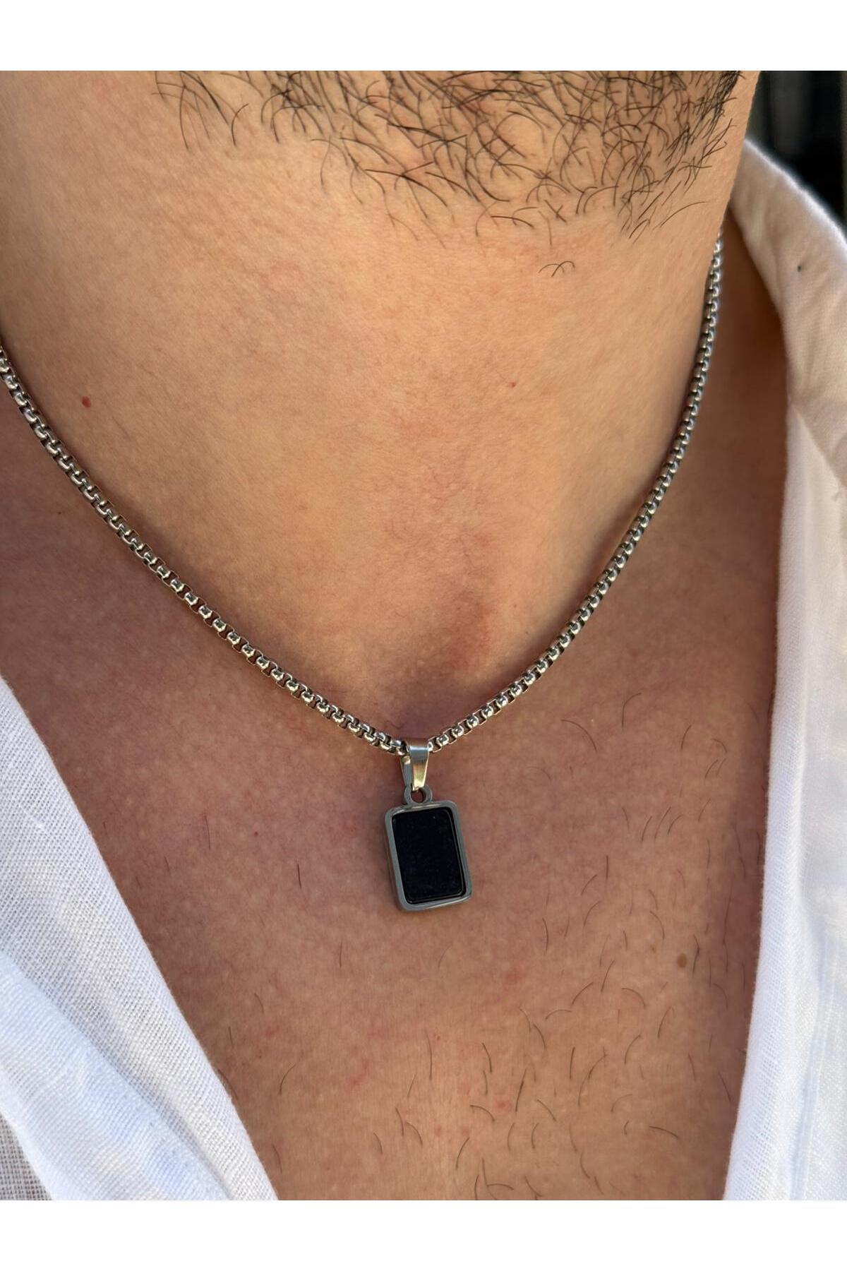 Butch Erkek Minimal Dikdörtgen Siyah Oniks Doğal Taş Uçlu Çelik Kolye Butch Erkek Minimal Dikdörtgen Siyah Oniks Doğal Taş Uçlu Çelik Kolye ACEK22034 45 cm