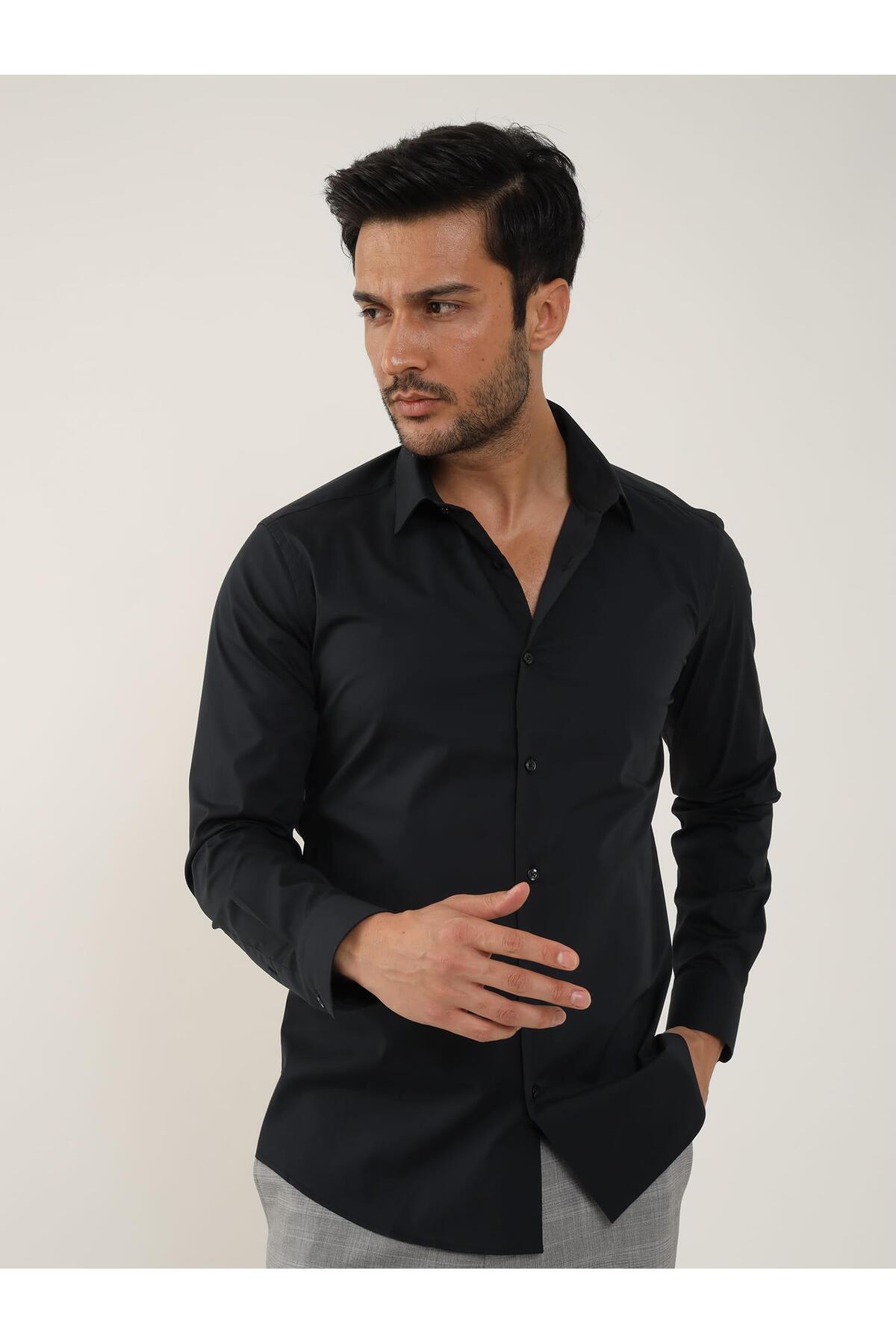 Siyah Erkek Slim Fit Düz Klasik Yaka Uzun Kol Gömlek Siyah Erkek Slim Fit Düz Klasik Yaka Uzun Kol Gömlek DU1999011025 46