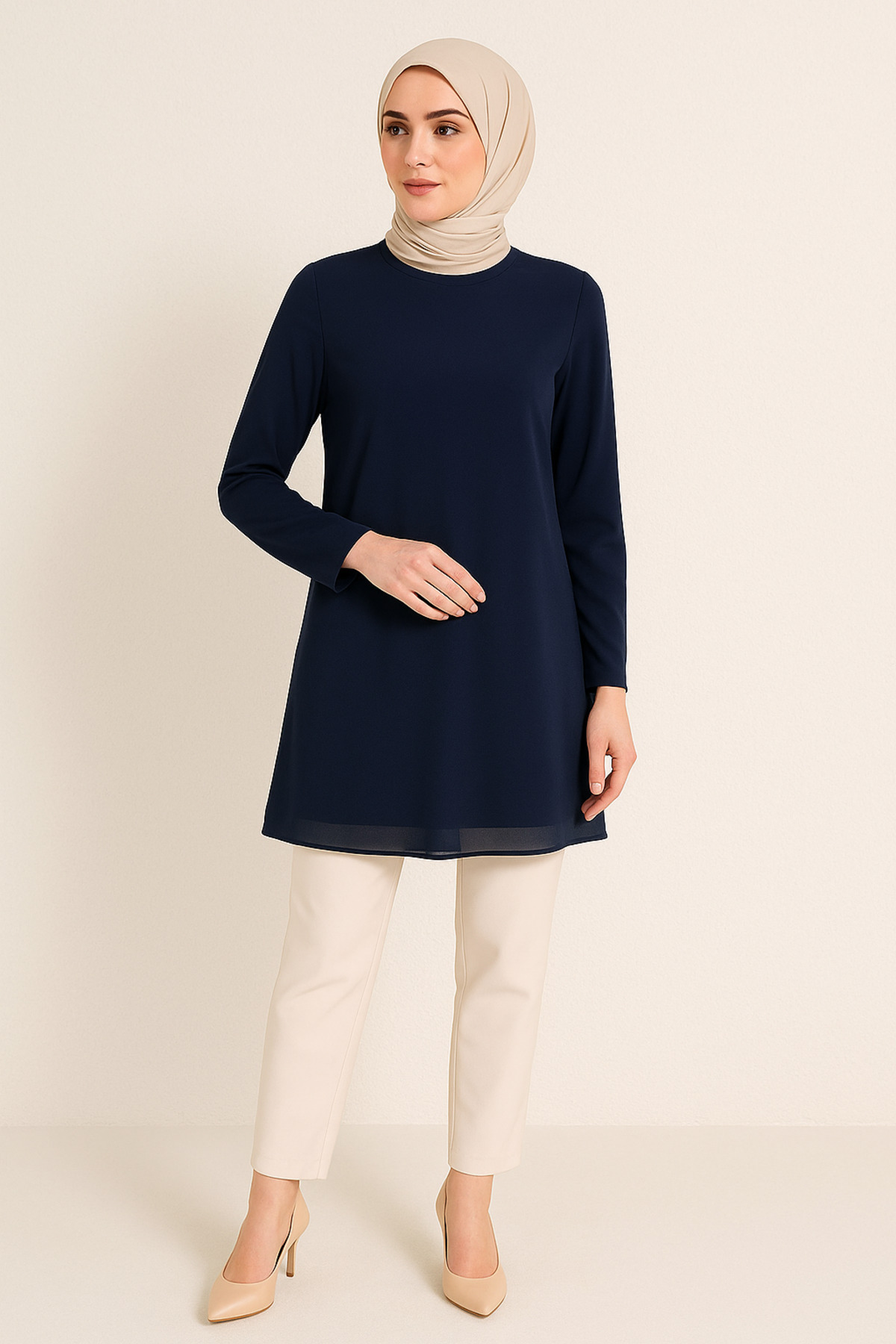 LacivertPuane Önü Şifon Detaylı Uzun Kollu İçlik Tunik LacivertPuane Önü Şifon Detaylı Uzun Kollu İçlik Tunik es10270 L/XL