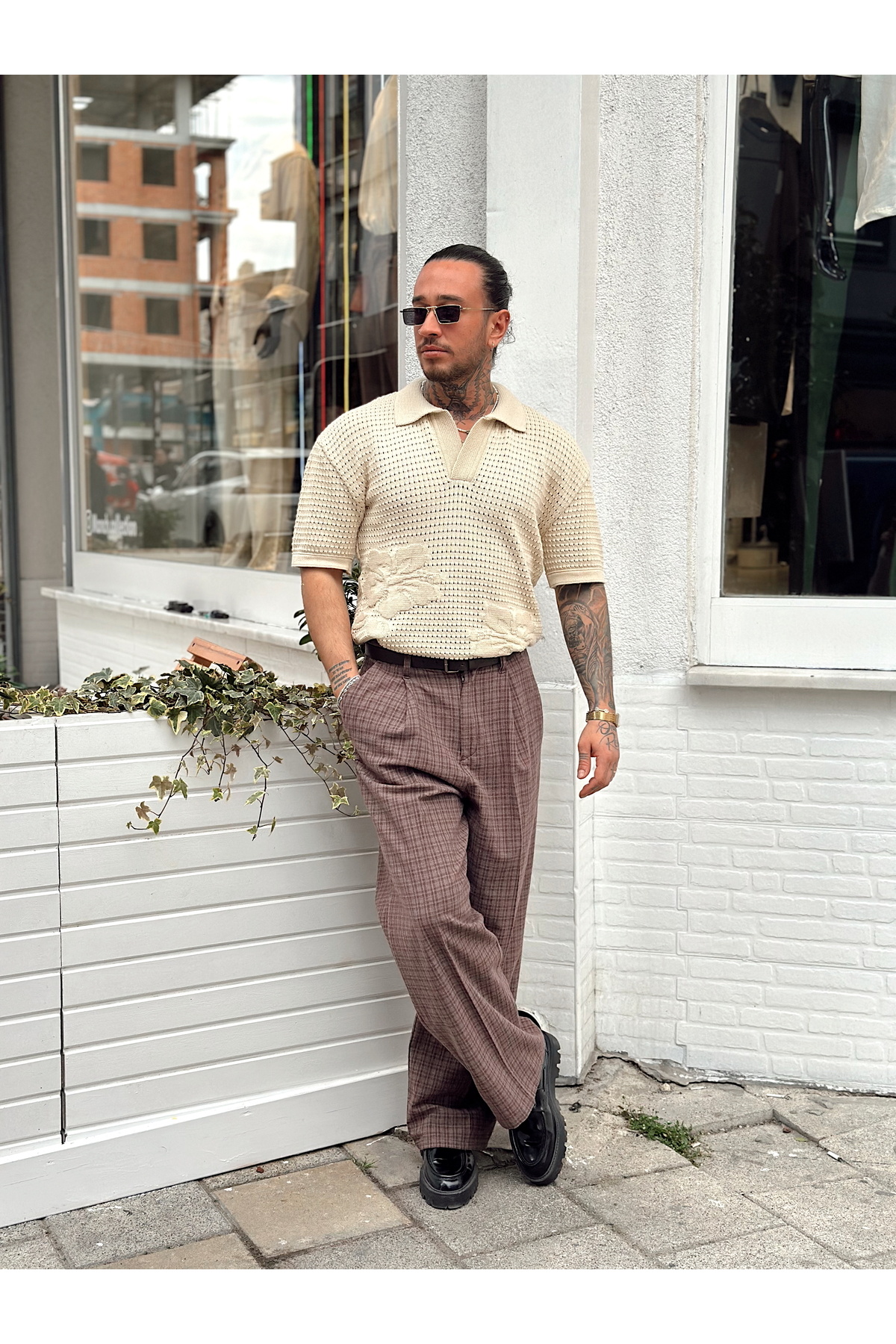 Delikli Kabartma Nakışlı Polo Yaka Triko Delikli Kabartma Nakışlı Polo Yaka Triko MT2639 XL