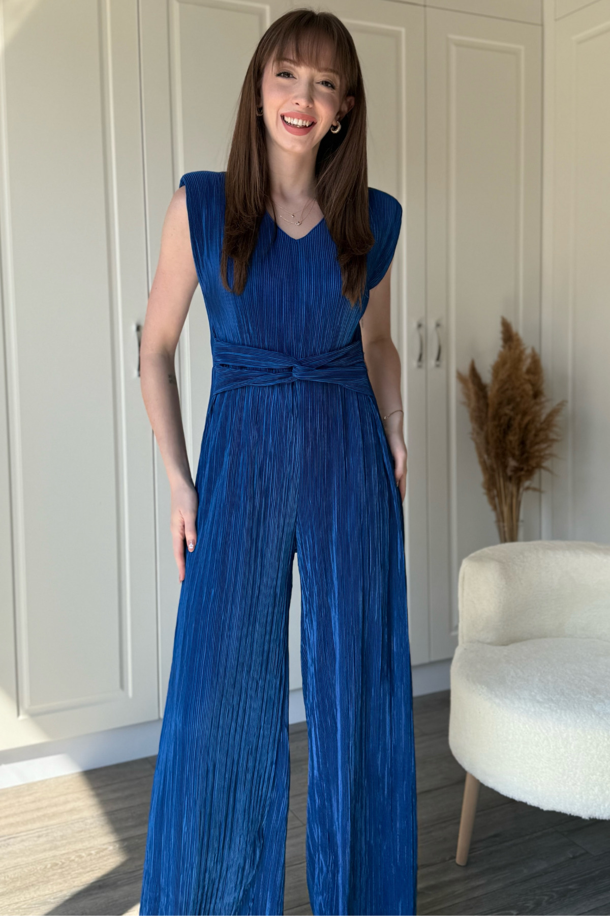 Vatkalı Bel Detaylı Krinkıl Piliseli Bol Paça Lacivert Tulum Vatkalı Bel Detaylı Krinkıl Piliseli Bol Paça Lacivert Tulum NovadTULUM22 L