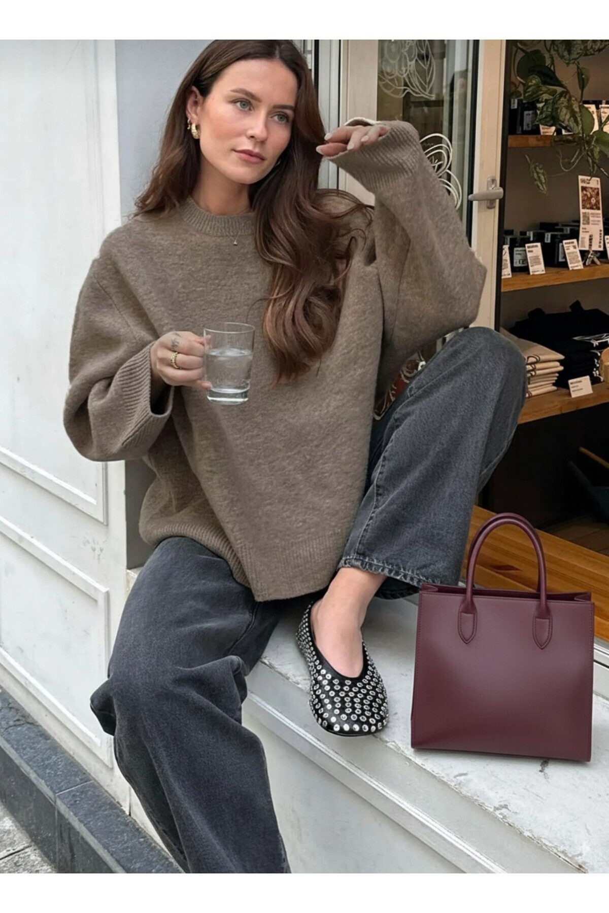 Kadın KAHVERENGİ Oversize Triko Kazak - Yumuşak Dokulu Bisiklet Yaka Kadın KAHVERENGİ Oversize Triko Kazak - Yumuşak Dokulu Bisiklet Yaka kodea1943 XL