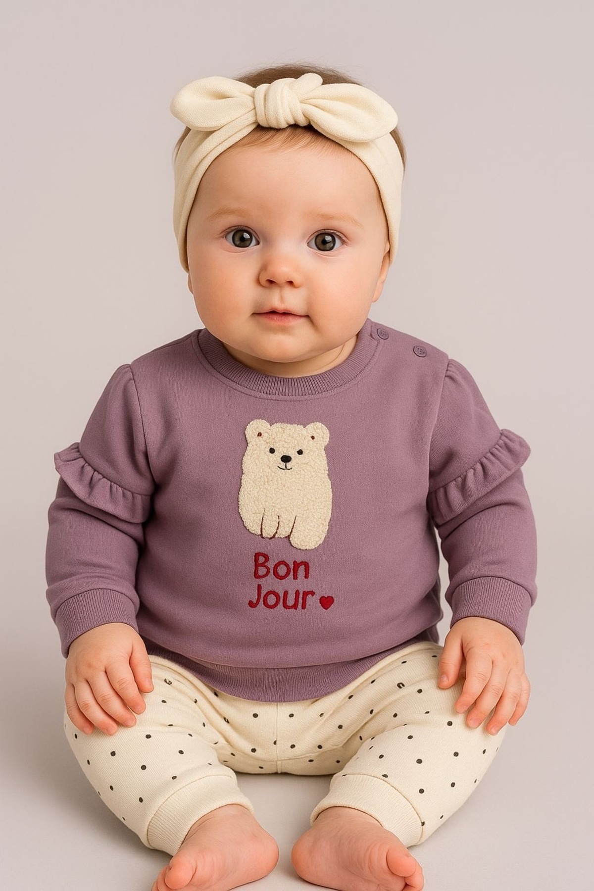 Kız Bebek Uzun Kollu Tavşan Desenli Alt Üst Bandana 3'lü Set Takım %100 Pamuklu Kız Bebek Uzun Kollu Tavşan Desenli Alt Üst Bandana 3'lü Set Takım %100 Pamuklu TAVŞANBANDANA-101 12-18 AY