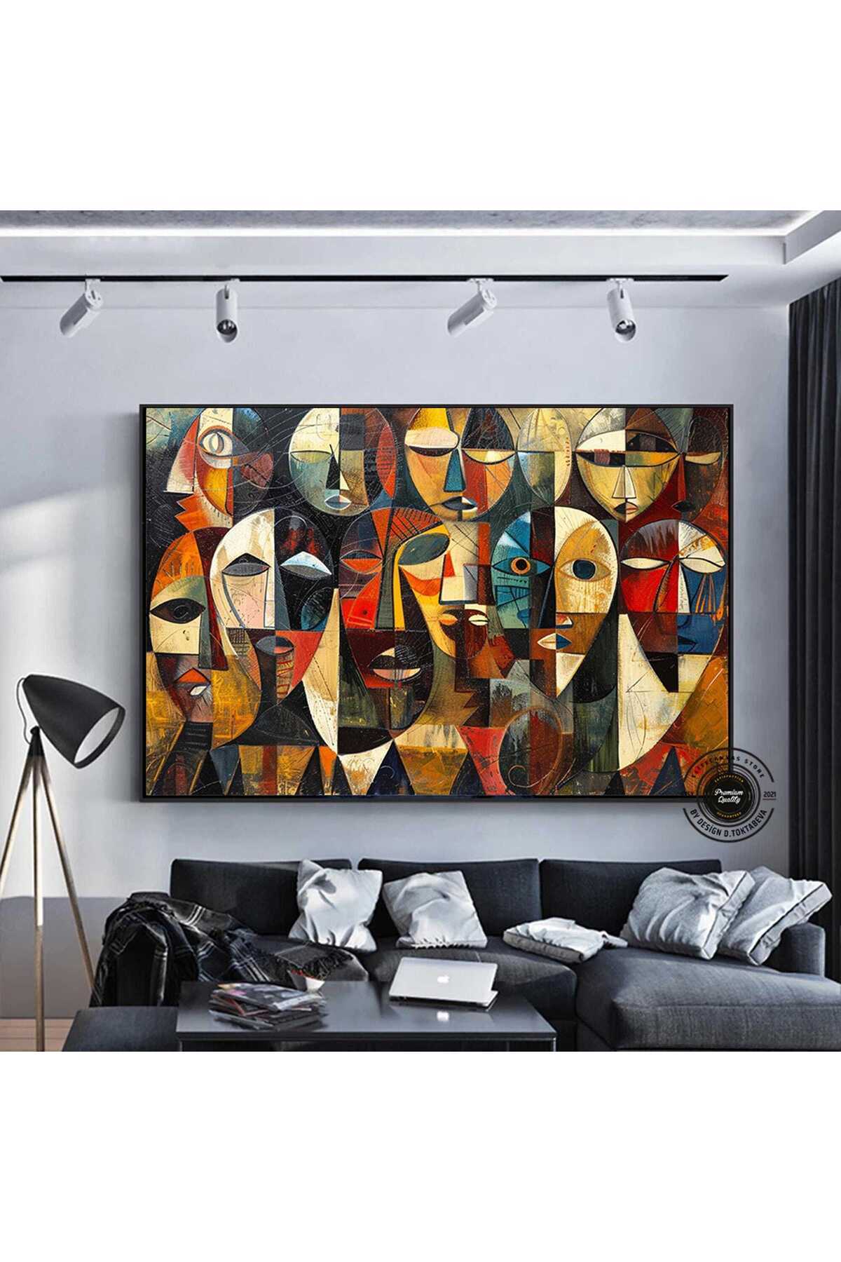 Soyut Yüzler Kübist Kanvas Baskı, Picasso Tarzı Afrikalı Yüz Poster, Etnik Duvar Dekoru Soyut Yüzler Kübist Kanvas Baskı, Picasso Tarzı Afrikalı Yüz Poster, Etnik Duvar Dekoru TR1107-8 120 x 180