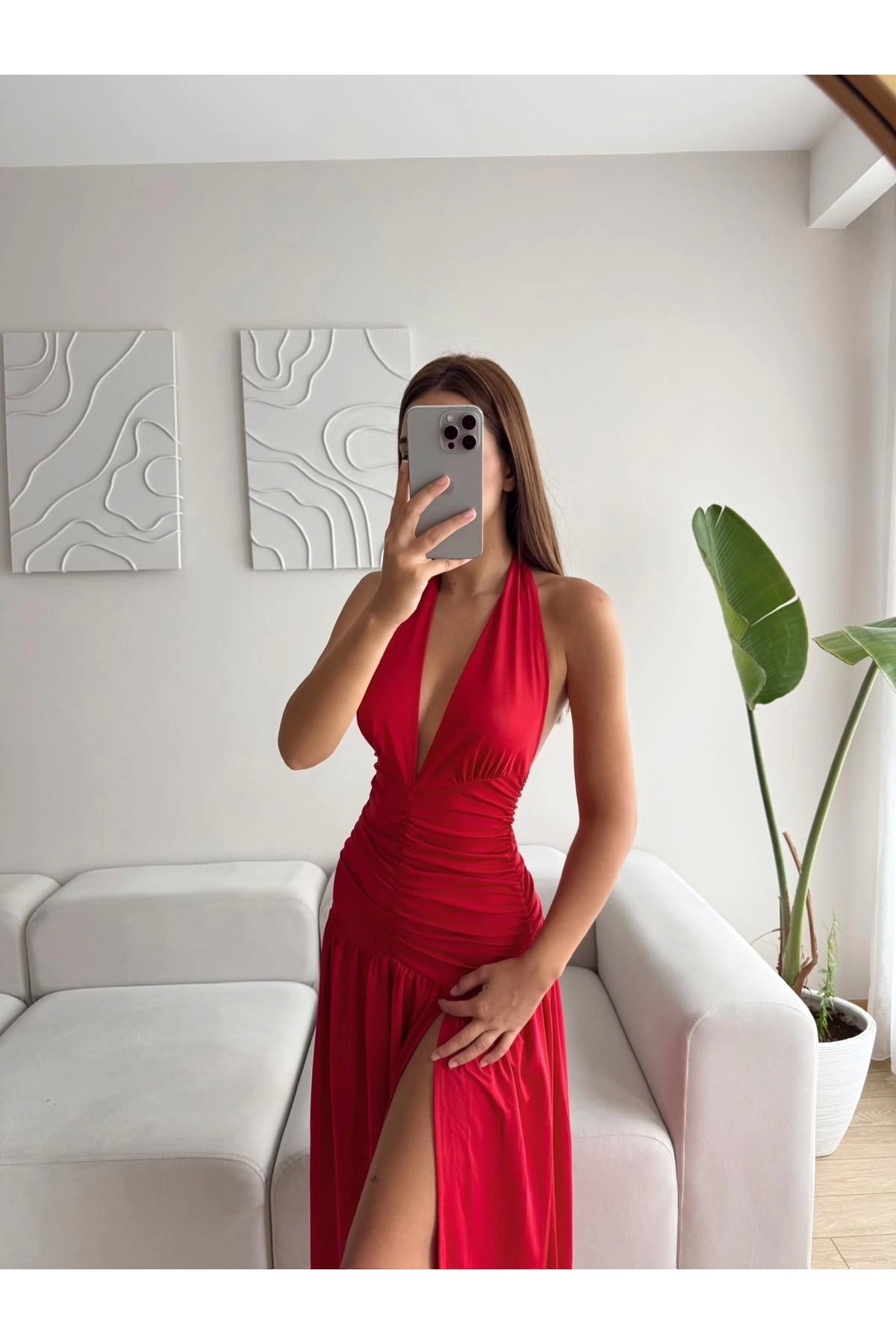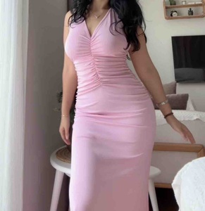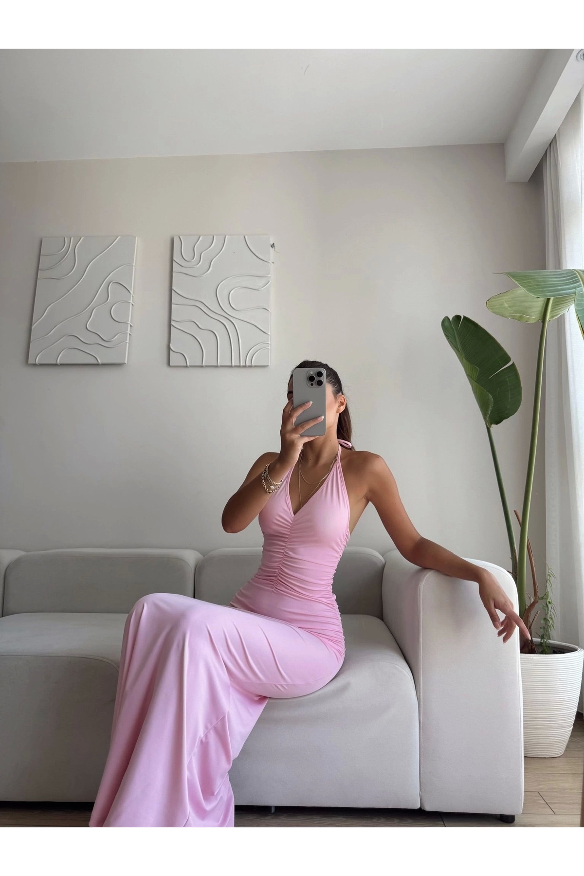 Büzgülü Boyun Bağlamalı Maxi Elbise - PEMBE Büzgülü Boyun Bağlamalı Maxi Elbise - PEMBE P17808S1123 L