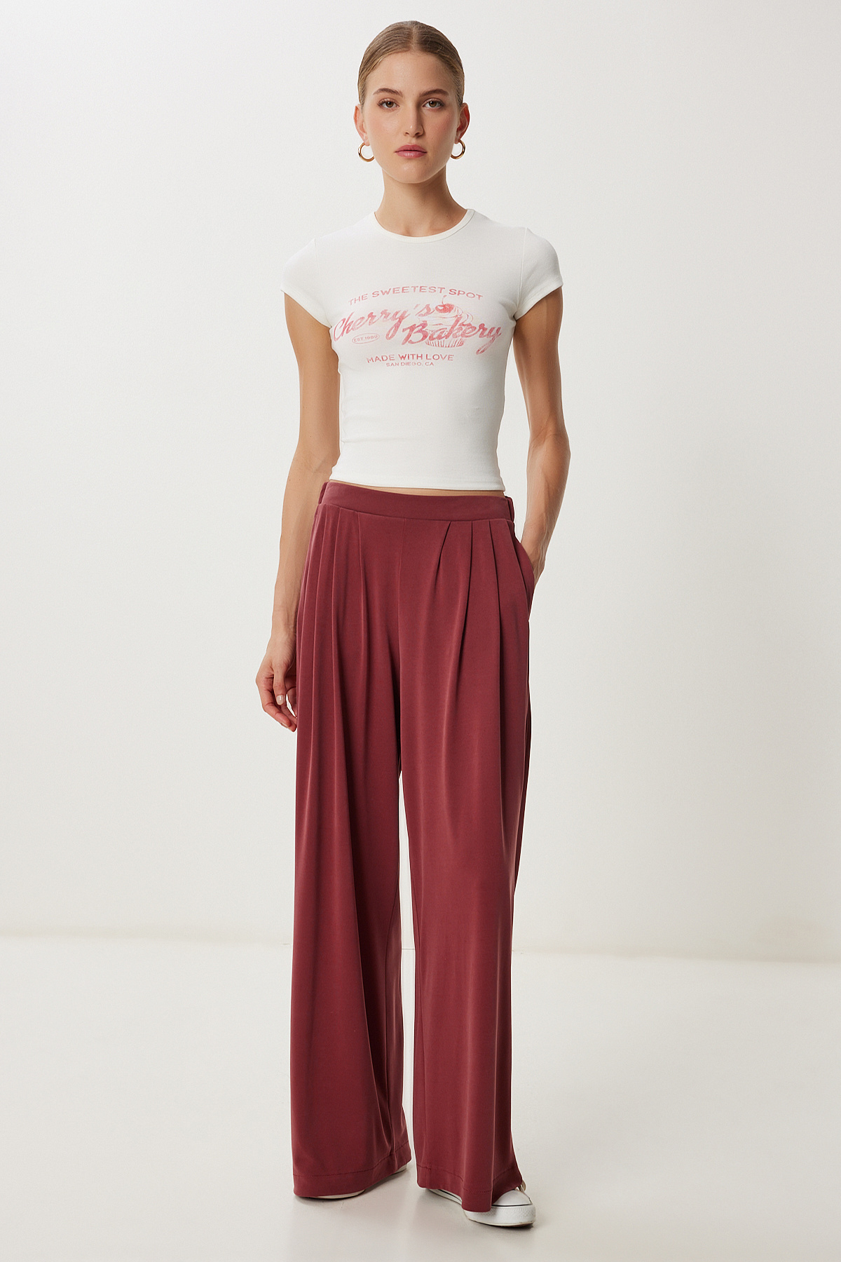 Geniş Paça Dökümlü Modal Pantolon LUB0208 KİREMİT Geniş Paça Dökümlü Modal Pantolon LUB0208 KİREMİT 40
