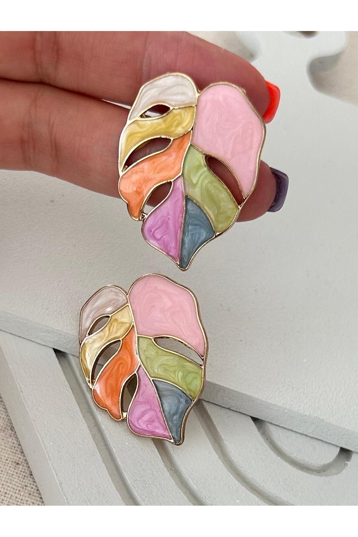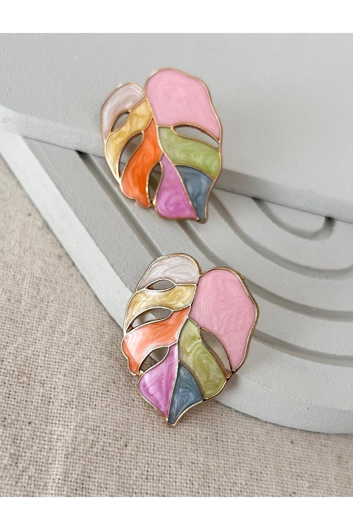 Pastel Tonlu Gold Yaprak Küpe(3,5x2,5cm) Pastel Tonlu Gold Yaprak Küpe(3,5x2,5cm) KP0134 تک سایز