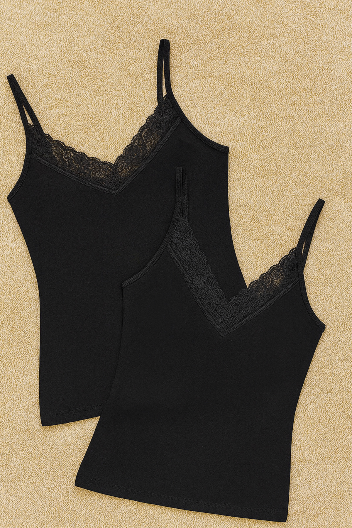 Kadın Modal Pamuklu Likralı Dantel Detaylı Askılı 2'li Atlet Q6K6K0T7KA Kadın Modal Pamuklu Likralı Dantel Detaylı Askılı 2'li Atlet Q6K6K0T7KA 2XL