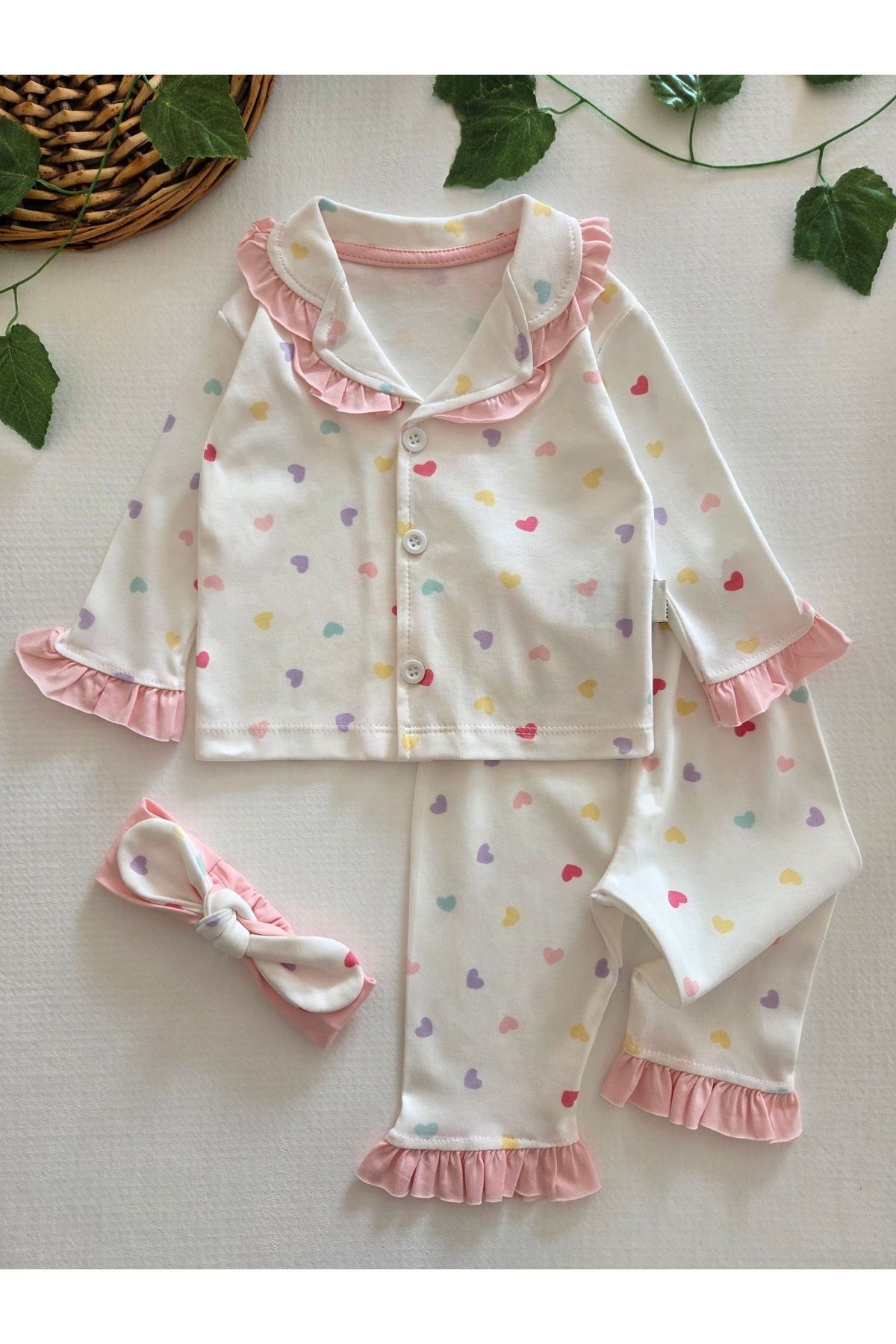 %100 Pamuk Saç Bantlı Uzun Kollu Mevsimlik Kız Bebek Pijama Takımı %100 Pamuk Saç Bantlı Uzun Kollu Mevsimlik Kız Bebek Pijama Takımı fırfır 2-3 Yaş