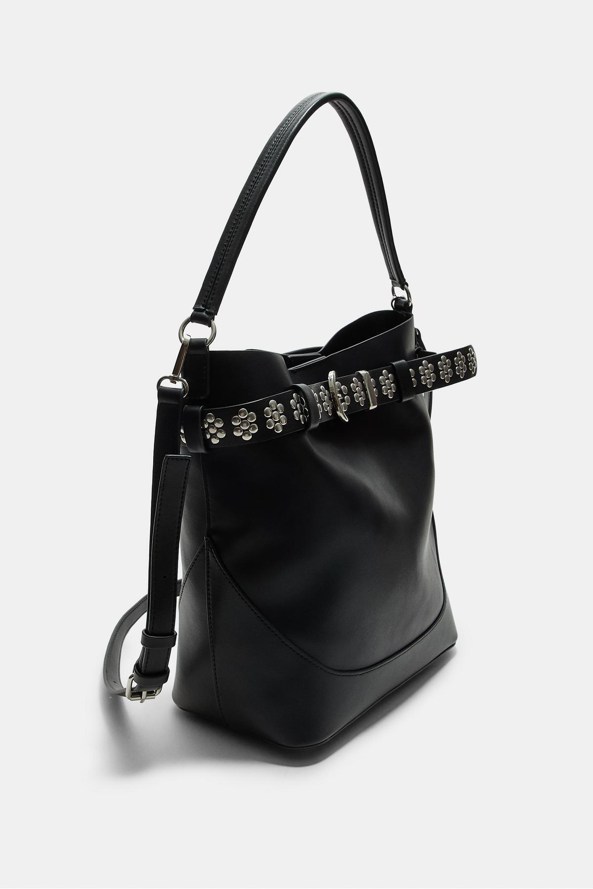 Kemer ve Zımba Detaylı Kova Çanta Kemer ve Zımba Detaylı Kova Çanta 03643911 تک سایز