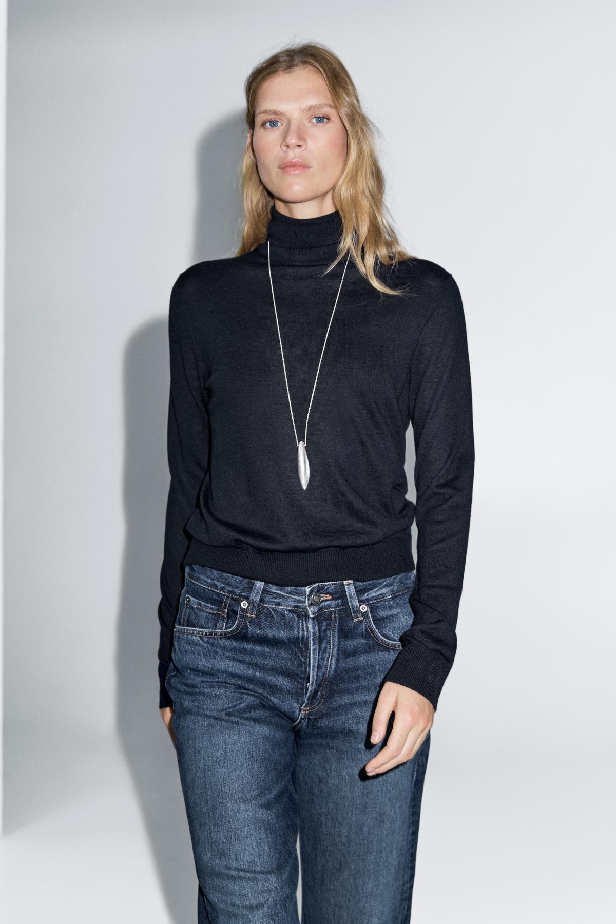 Dik yaka yün karışımlı kazak Dik yaka yün karışımlı kazak 00110779205660579 XL