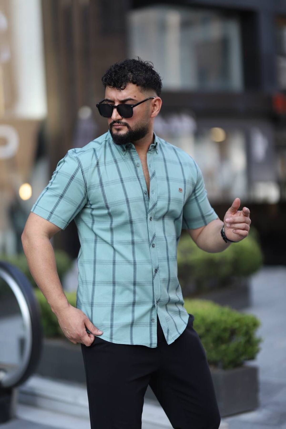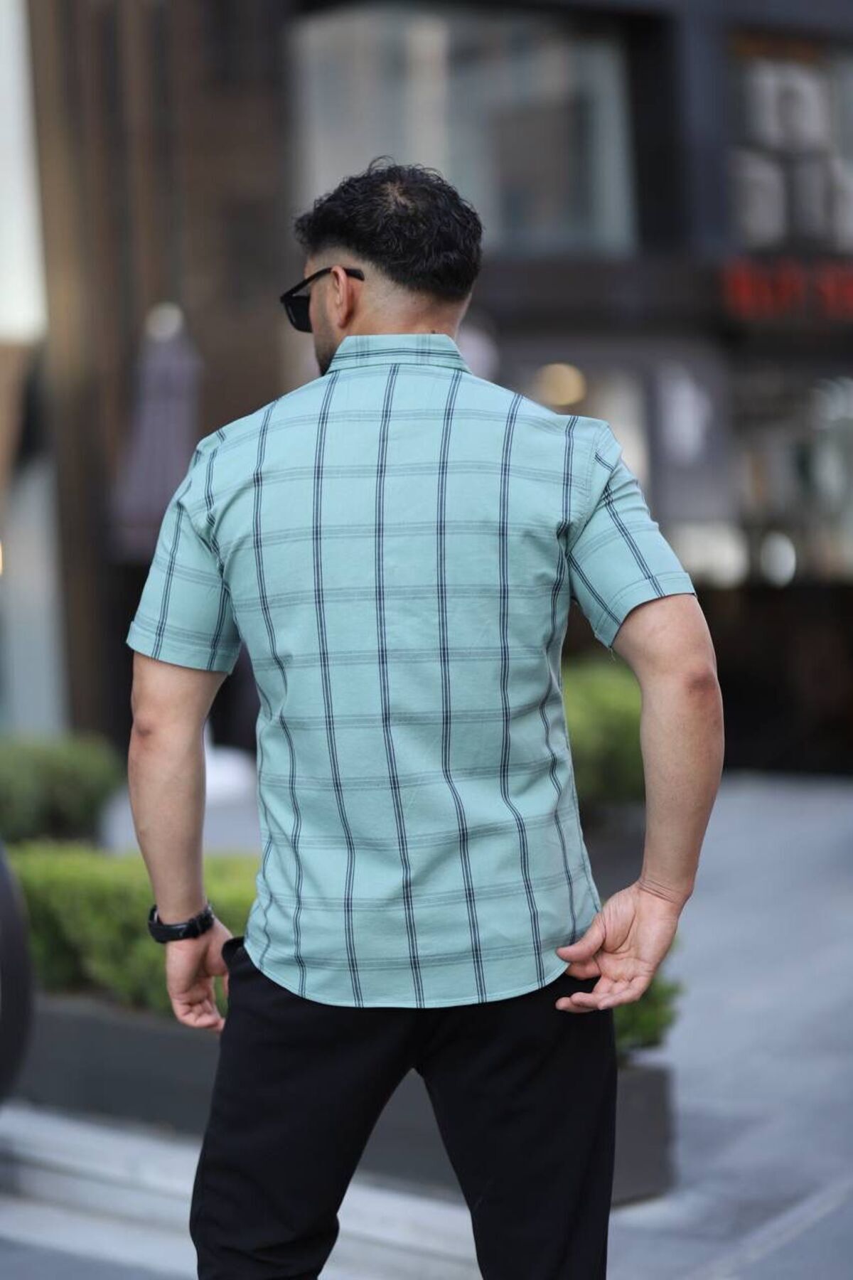 Erkek Yıkamalı Kısa Kol Kareli Gömlek 2462-1 Erkek Yıkamalı Kısa Kol Kareli Gömlek 2462-1 2XL