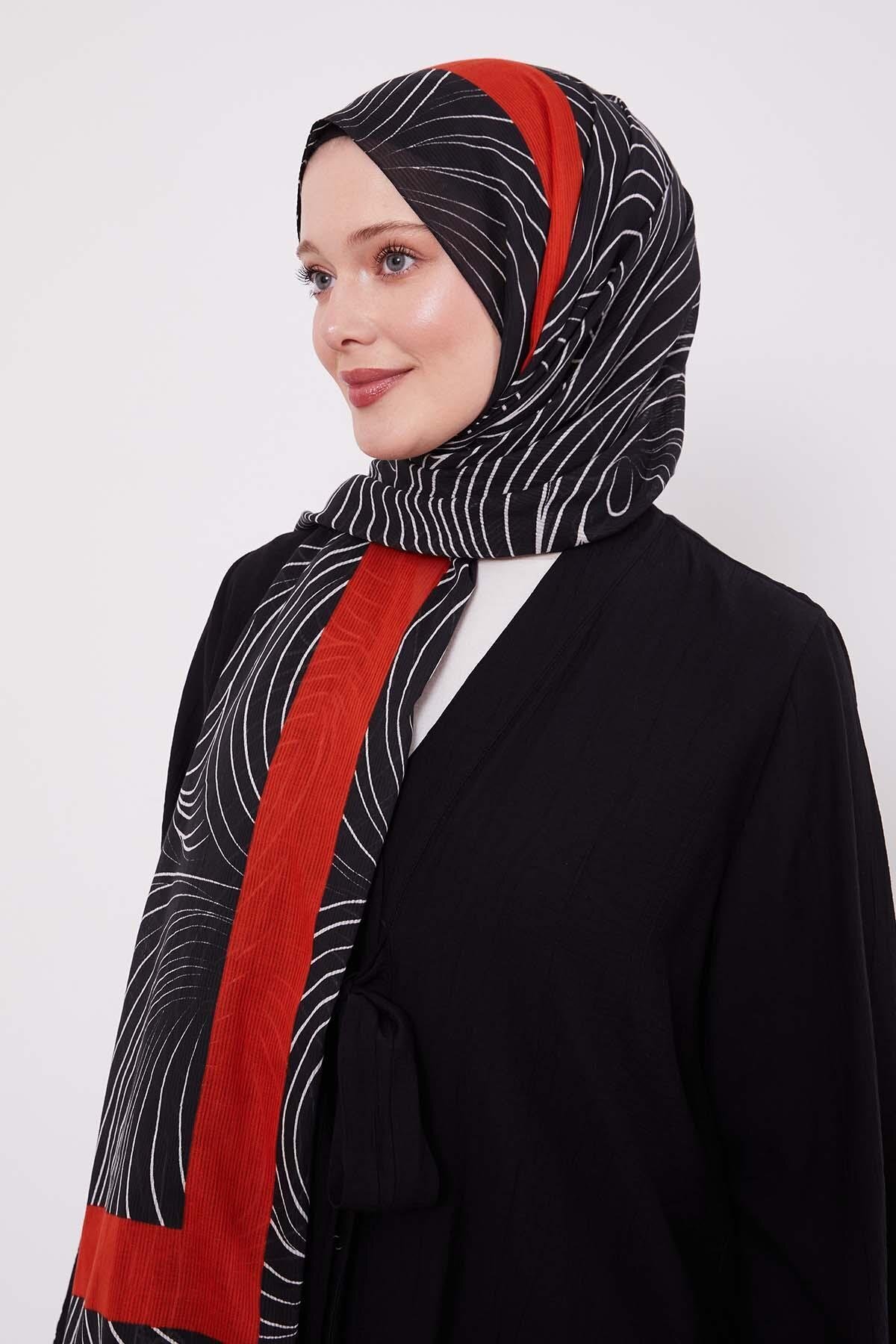 Siyah-Kırmızı Tropikal Pamuklu Şal Siyah-Kırmızı Tropikal Pamuklu Şal LVD.PMK.0212 75 x 195