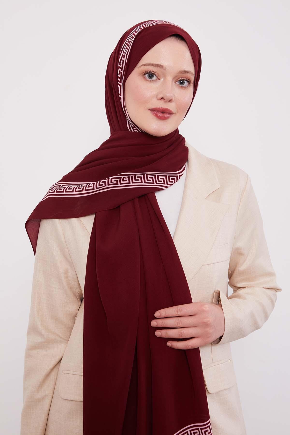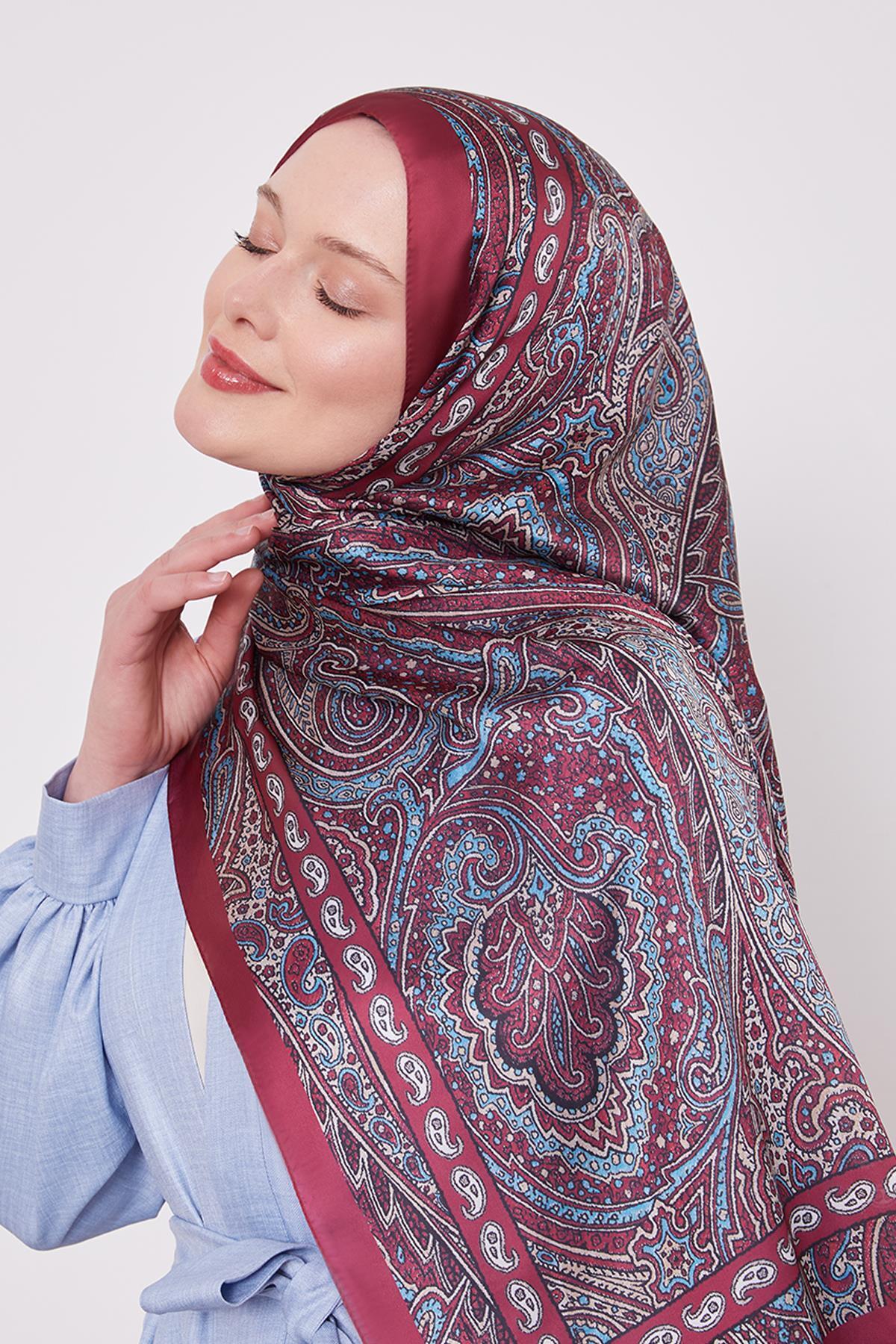 Bordo Varaklı Baklava Desen Medine İpeği Şal Bordo Varaklı Baklava Desen Medine İpeği Şal LVD.MIS.0011 75 x 195