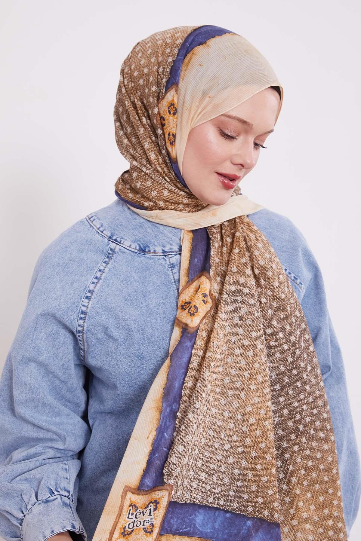 Lacivert Benek Desen Pamuk Şal Lacivert Benek Desen Pamuk Şal LVD.PMK.0213 75 x 195