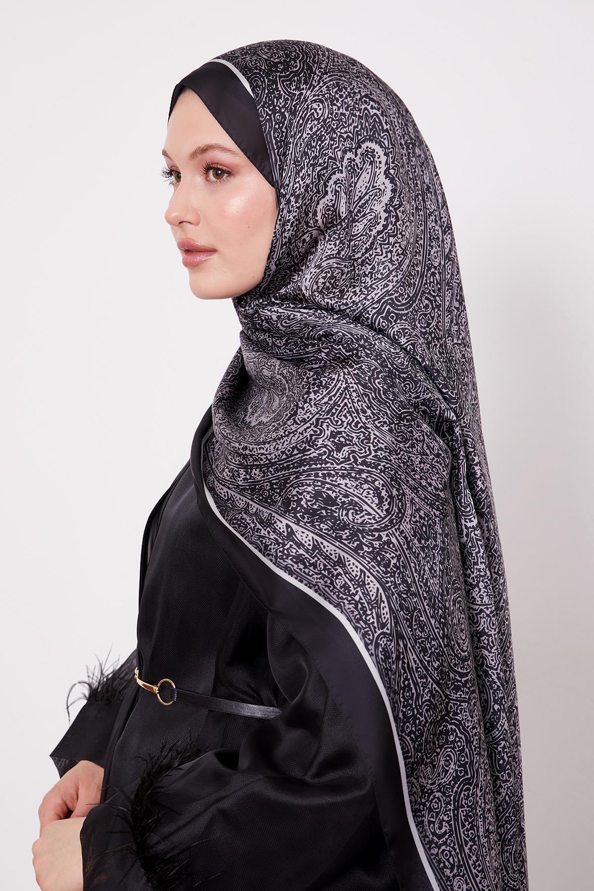 Siyah Baskılı Hint İpeği Şal Siyah Baskılı Hint İpeği Şal LVD.HNT.0014 75 x 195