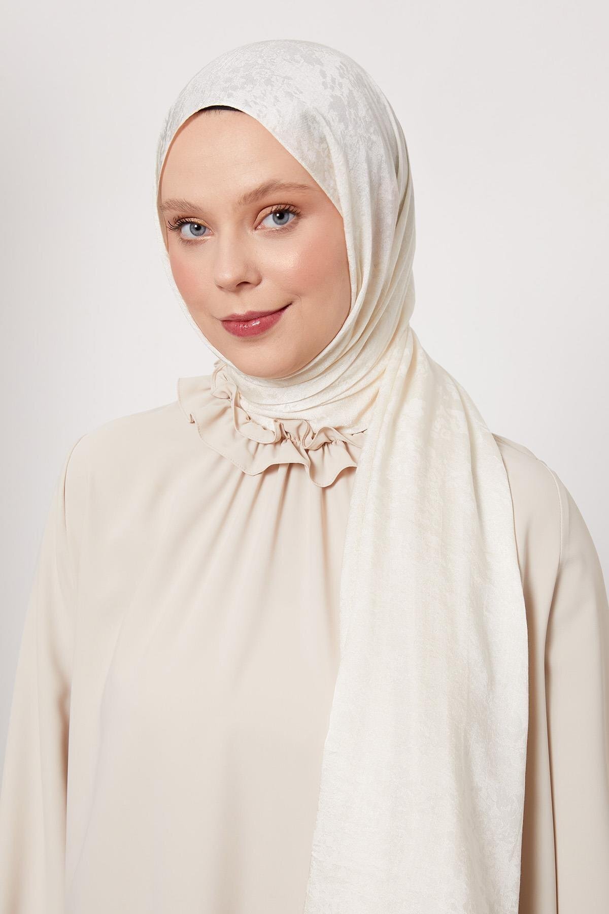 Krem Çiçek Desen İtalyan Jakar Şal Krem Çiçek Desen İtalyan Jakar Şal LVD.IJE.0003 75 x 195