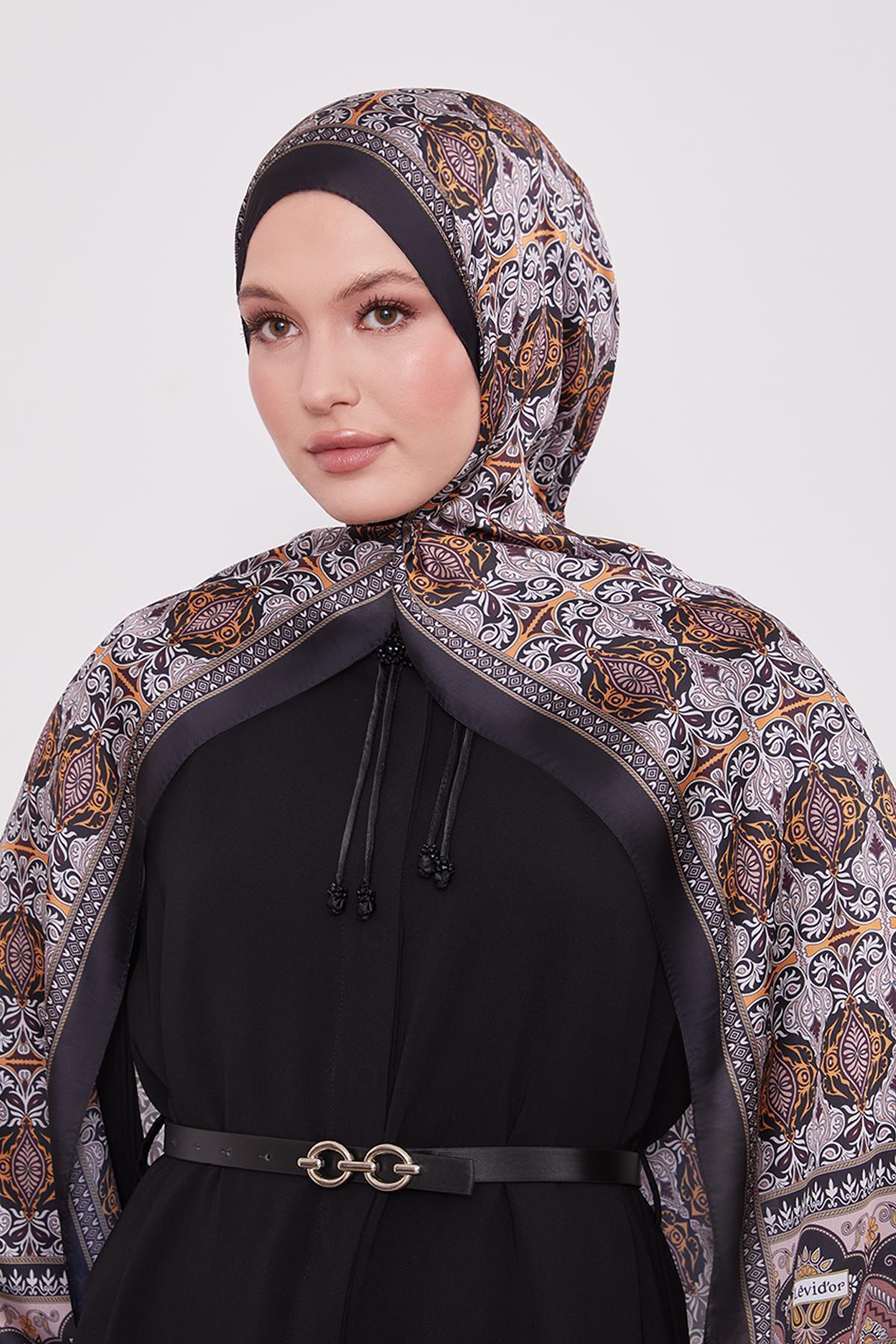 Siyah-Oranj Yansıma Desen Hint İpeği Şal Siyah-Oranj Yansıma Desen Hint İpeği Şal LVD.HNT.0021 75 x 190