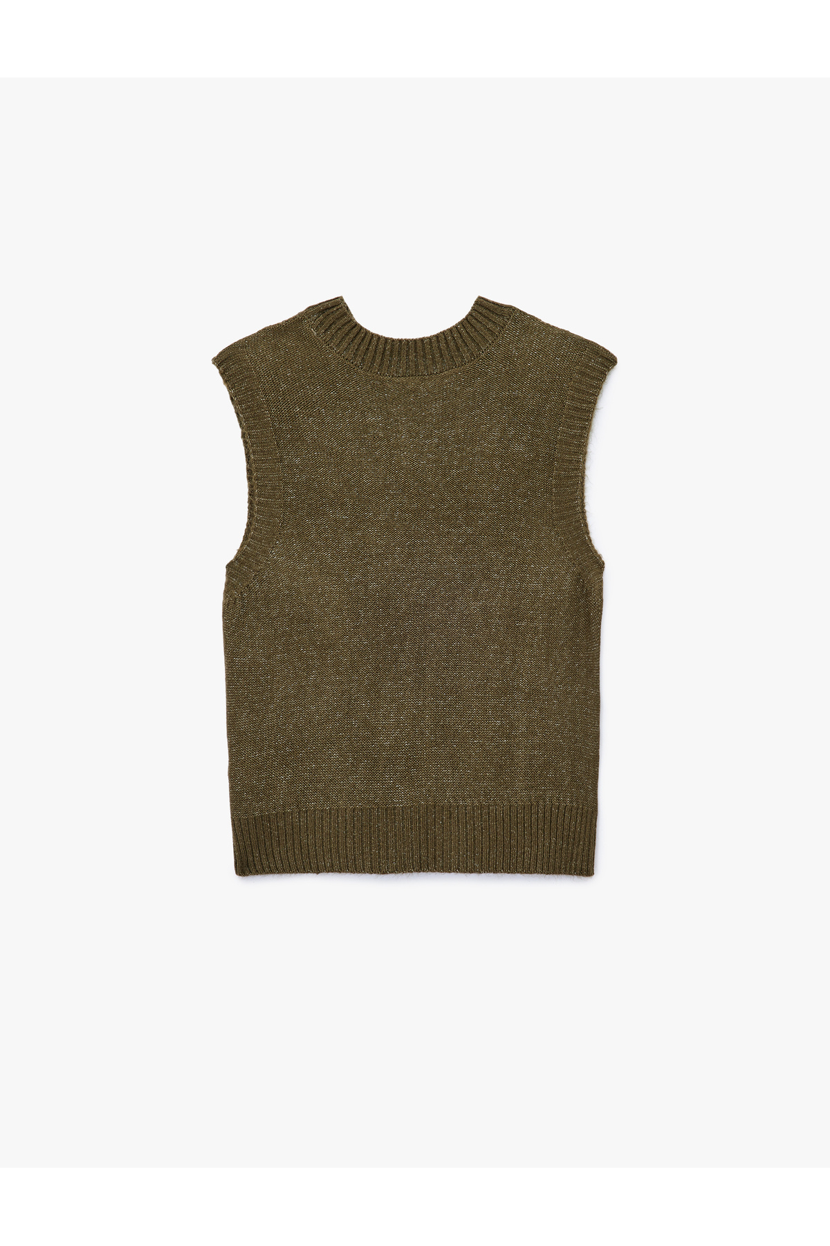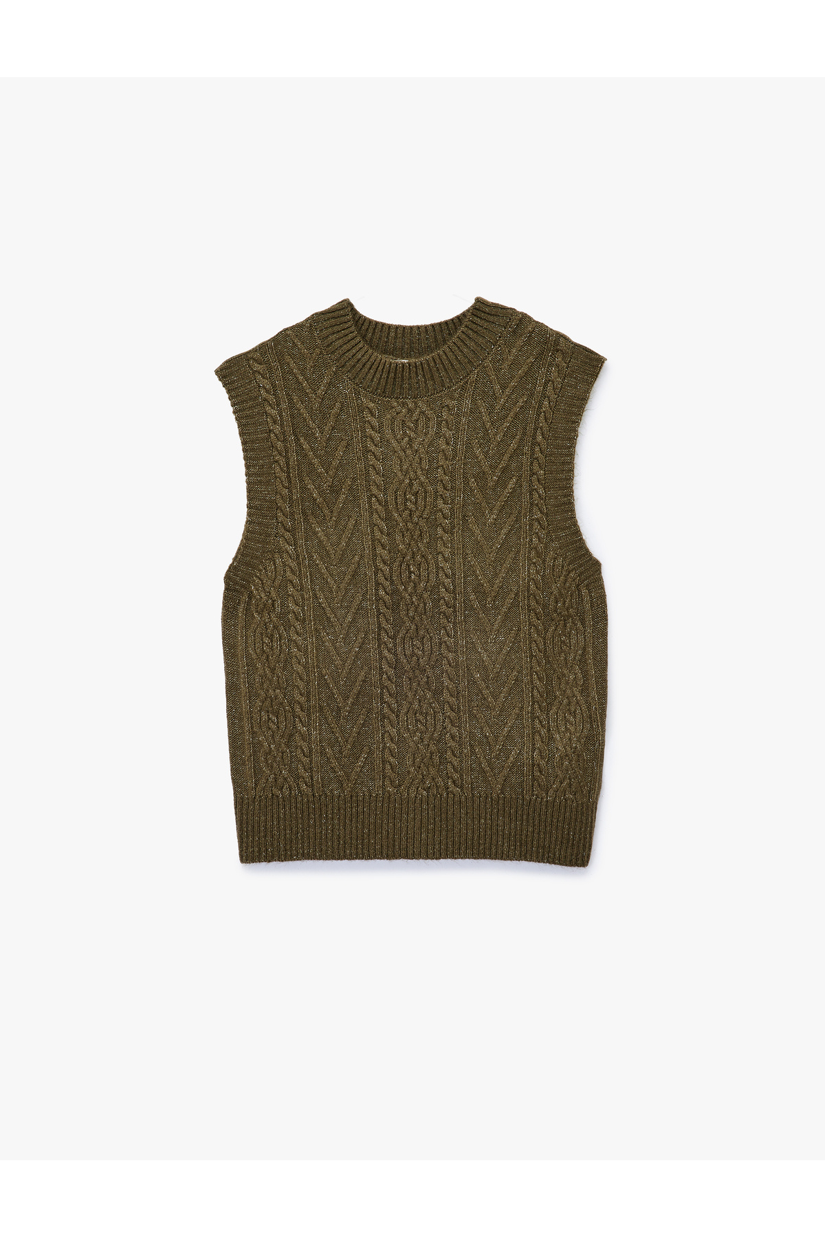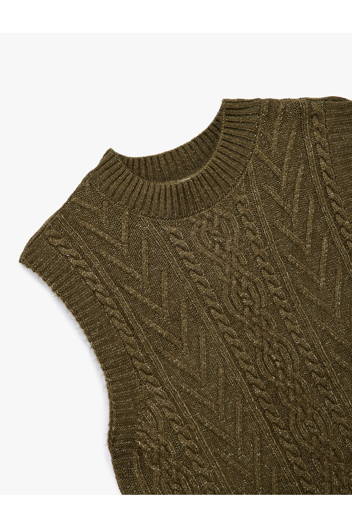 Kolsuz Dik Yaka Dokulu Triko Süveter Kolsuz Dik Yaka Dokulu Triko Süveter 6WAK20011HT XL