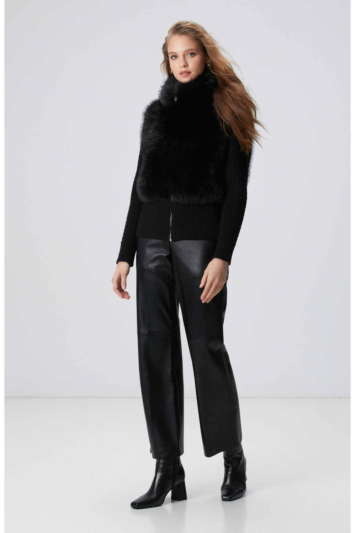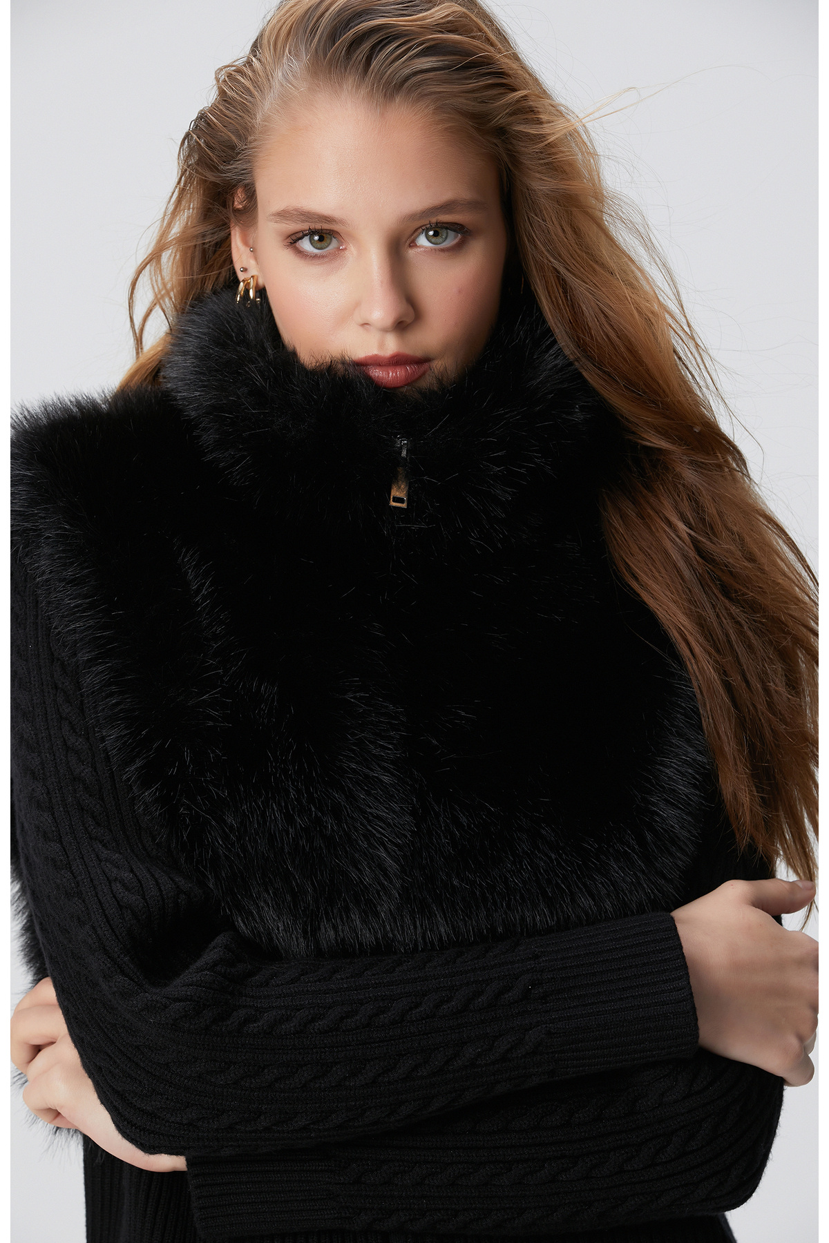 Siyah Suni Kürk Detaylı Triko Mont Siyah Suni Kürk Detaylı Triko Mont 1095670 XL