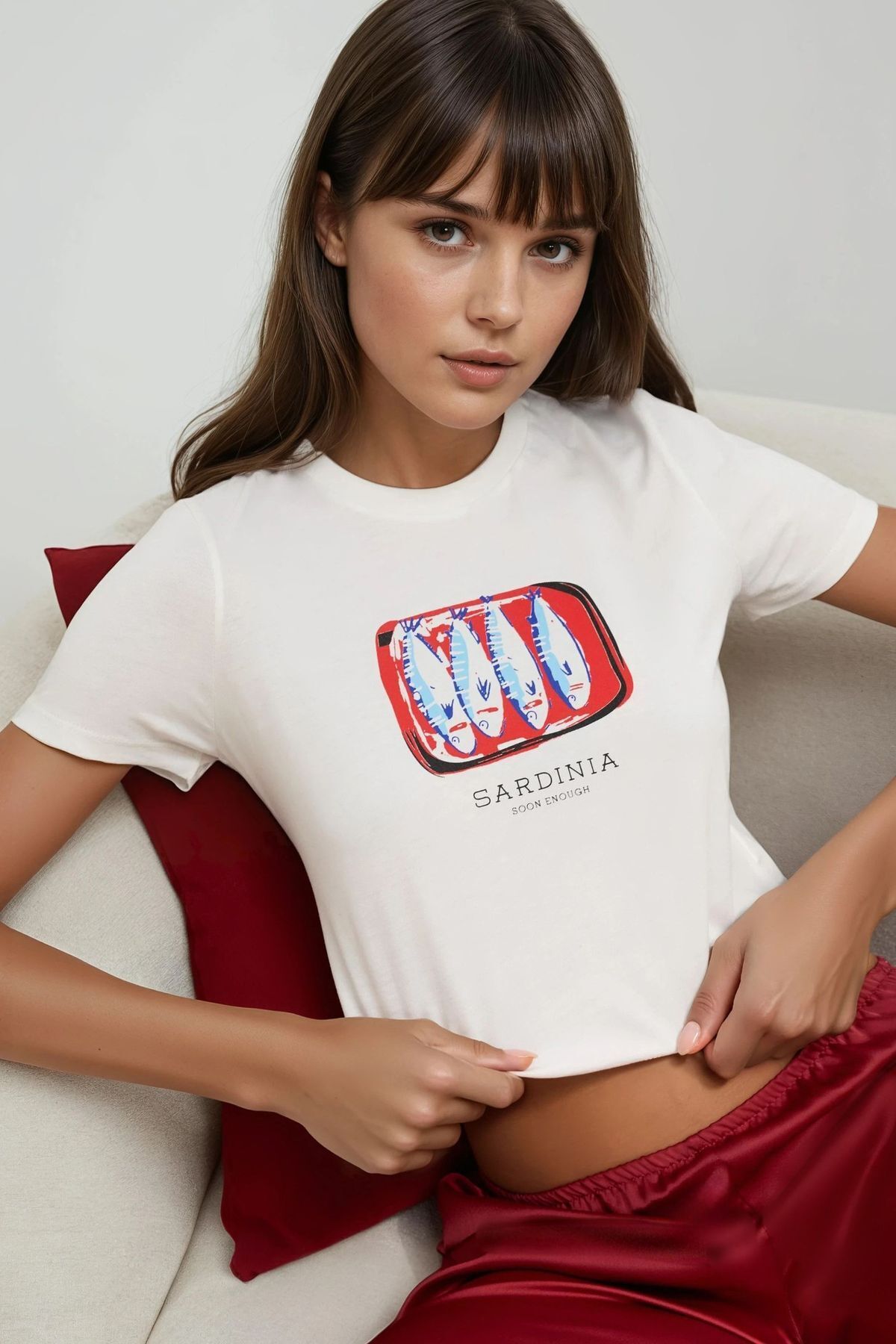 Kadın Bisiklet Yaka Kısa Kollu Önü Baskılı Pamuklu T-Shirt Kadın Bisiklet Yaka Kısa Kollu Önü Baskılı Pamuklu T-Shirt MCKSLUHJ XL