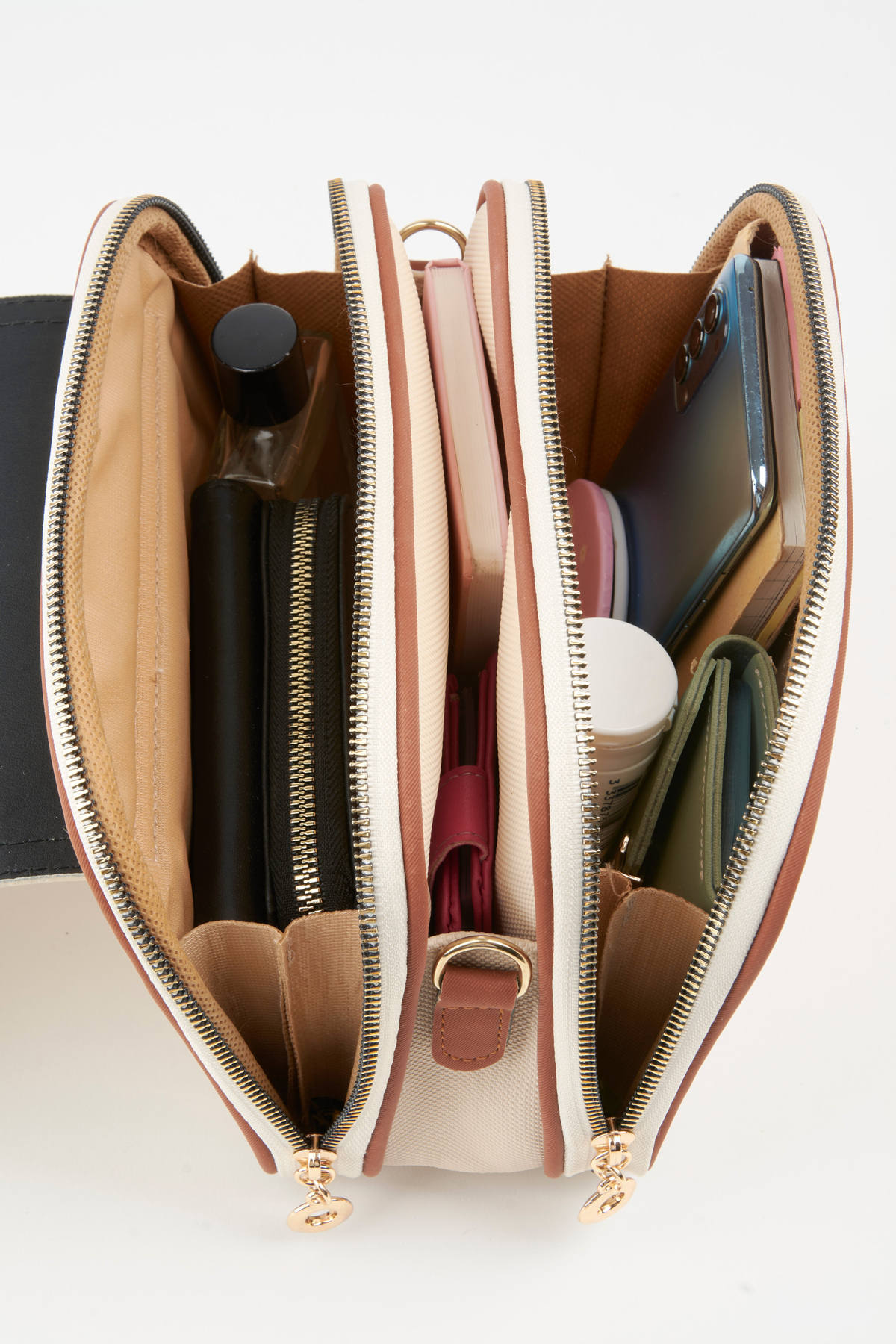 Kadın Yonca Krem Taba 4 Cepli Kapaklı Fermuar ve Çıt Çıt Kapama Kol Ve Omuz Çantası Kadın Yonca Krem Taba 4 Cepli Kapaklı Fermuar ve Çıt Çıt Kapama Kol Ve Omuz Çantası 2250-00 تک سایز