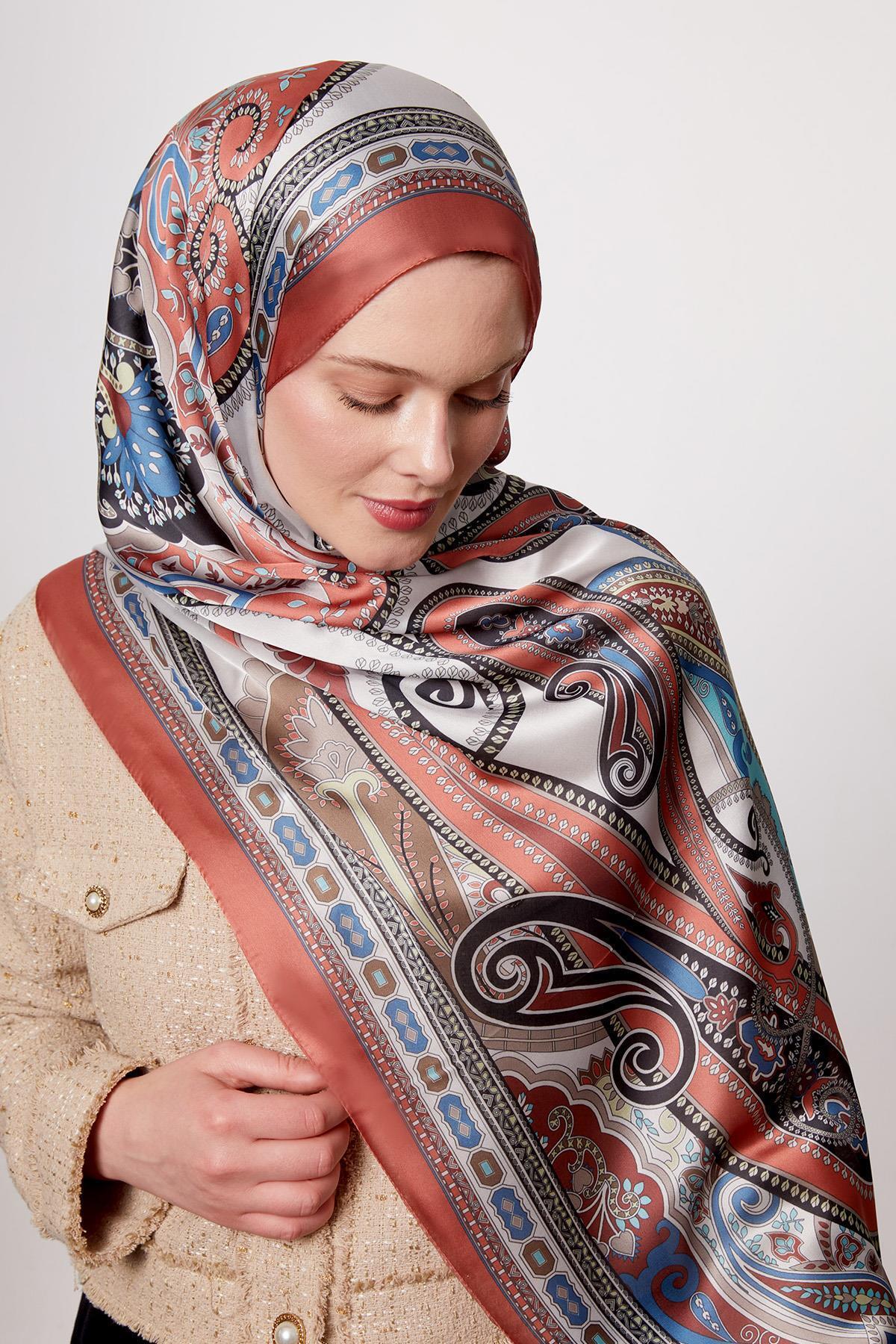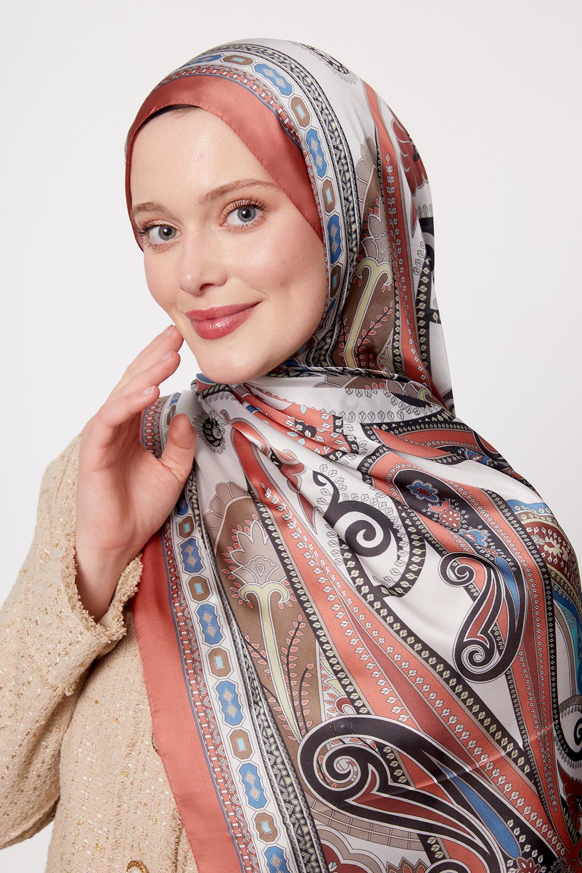 Turuncu Kenar Geometrik Desen Hint İpeği Şal Turuncu Kenar Geometrik Desen Hint İpeği Şal LVD.HNT.0026 75 x 195