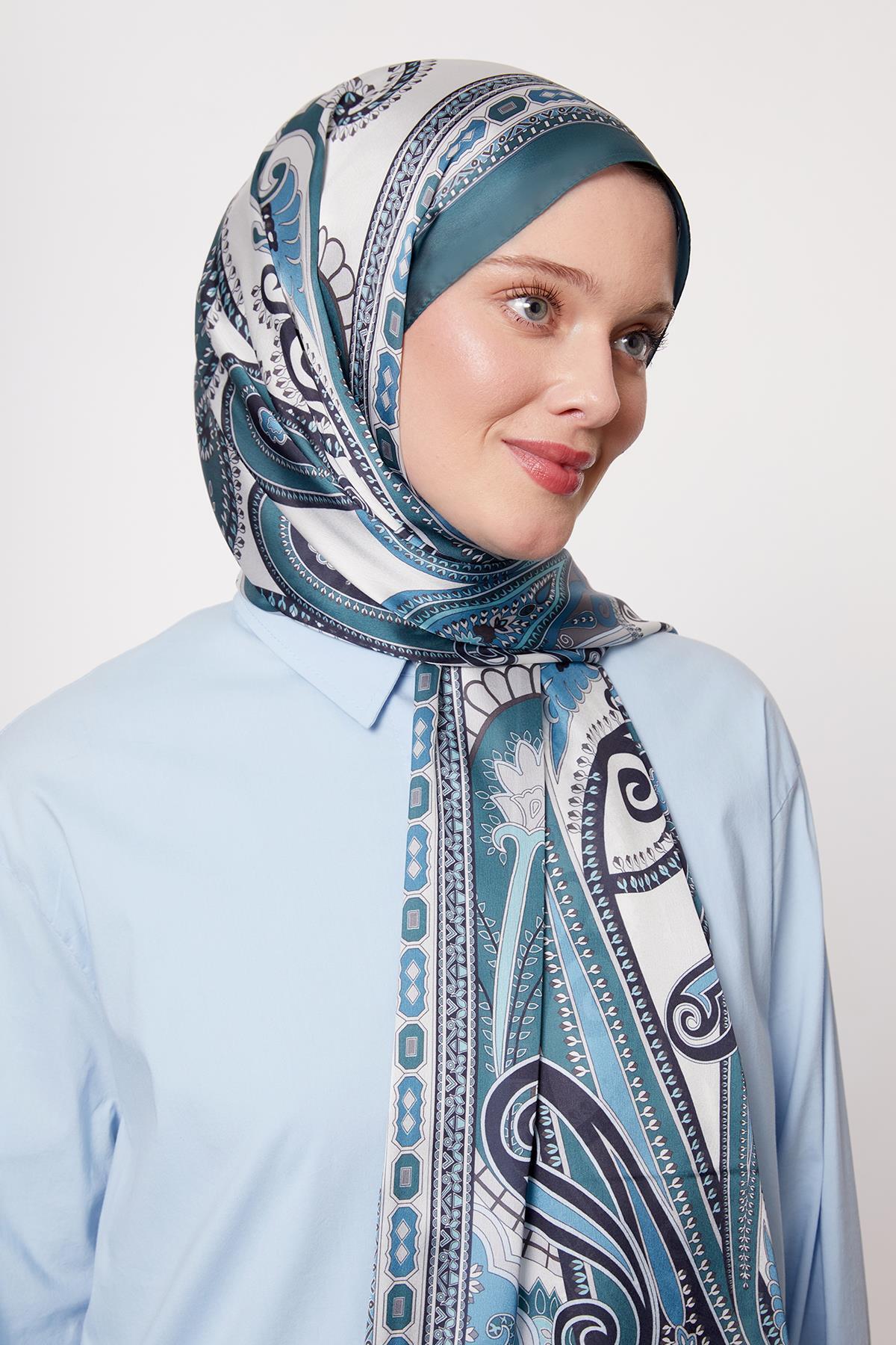 Zümrüt Kenar Geometrik Desen Hint İpeği Şal Zümrüt Kenar Geometrik Desen Hint İpeği Şal LVD.HNT.0026 75 x 195